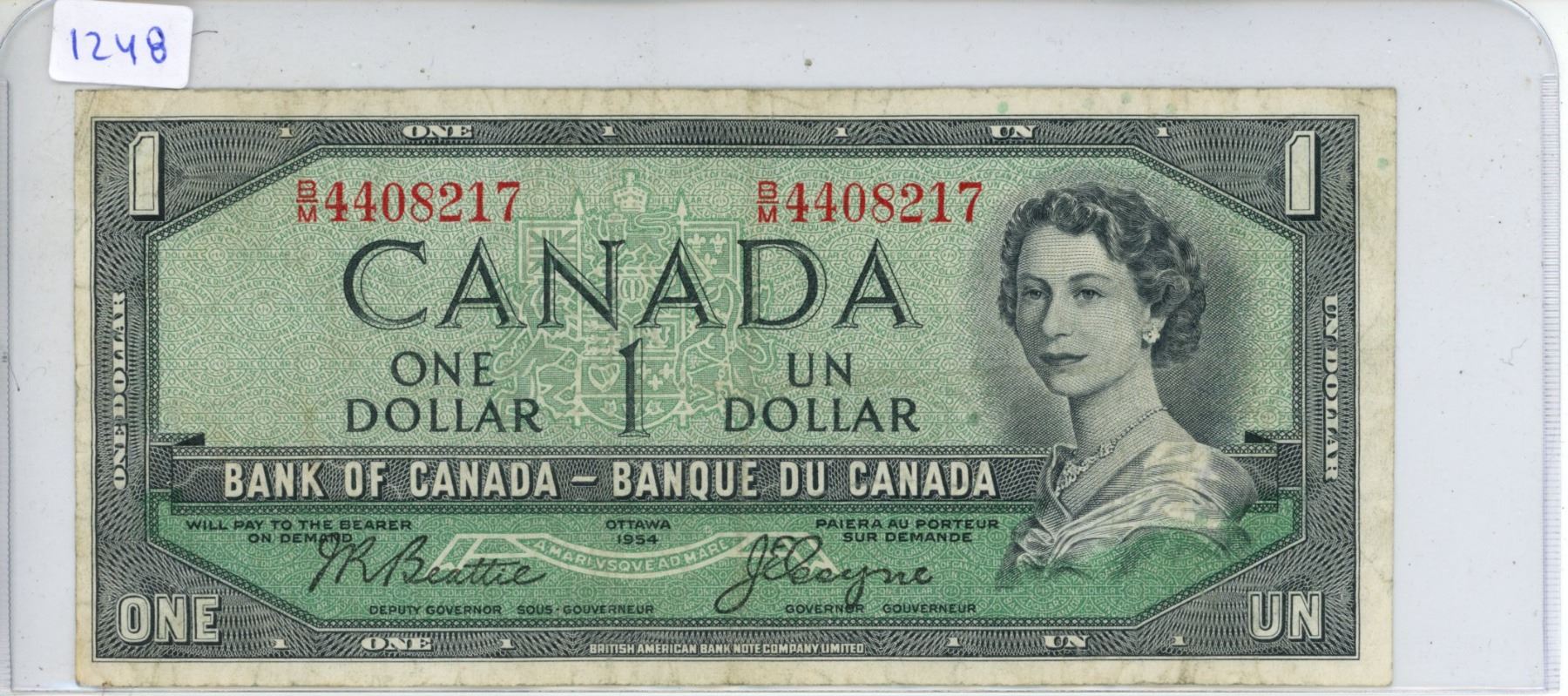 1954 Bank of Canada - One Dollar Note.