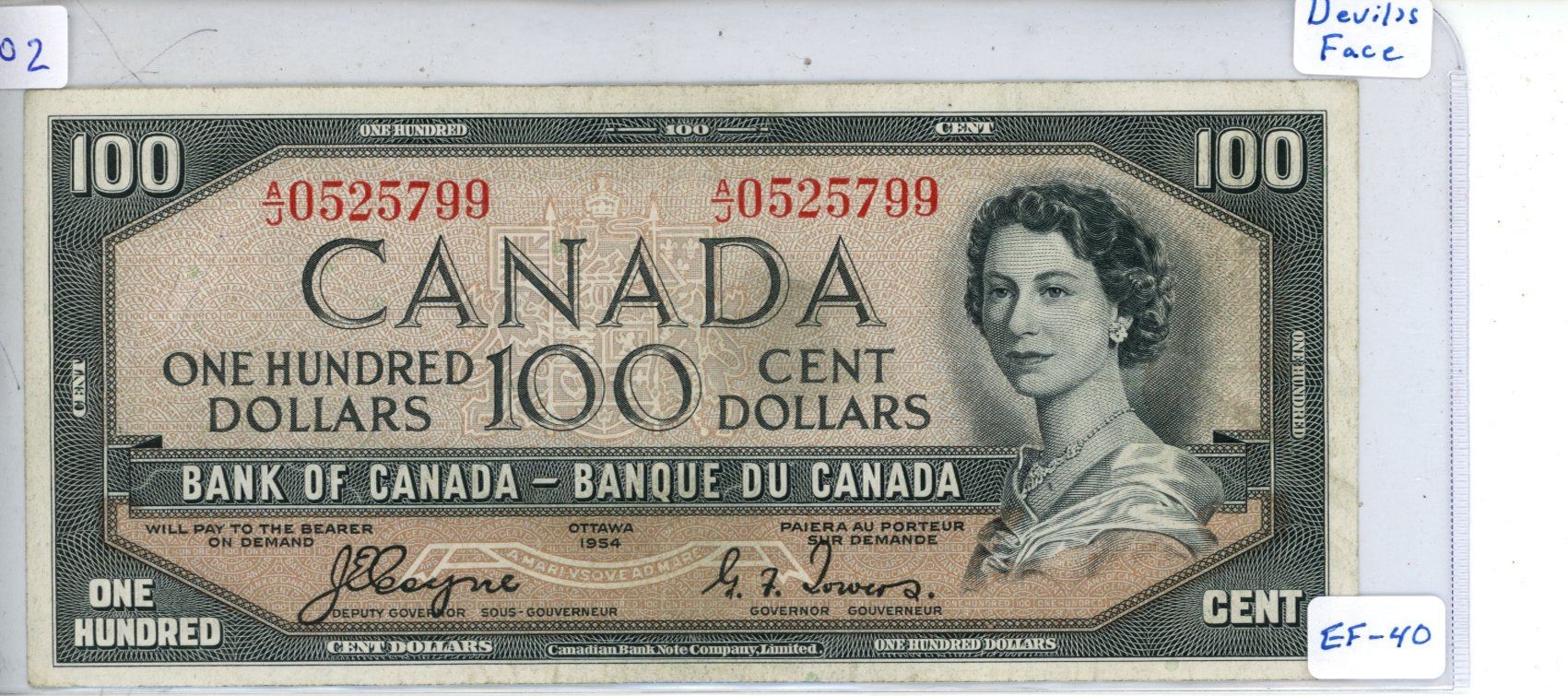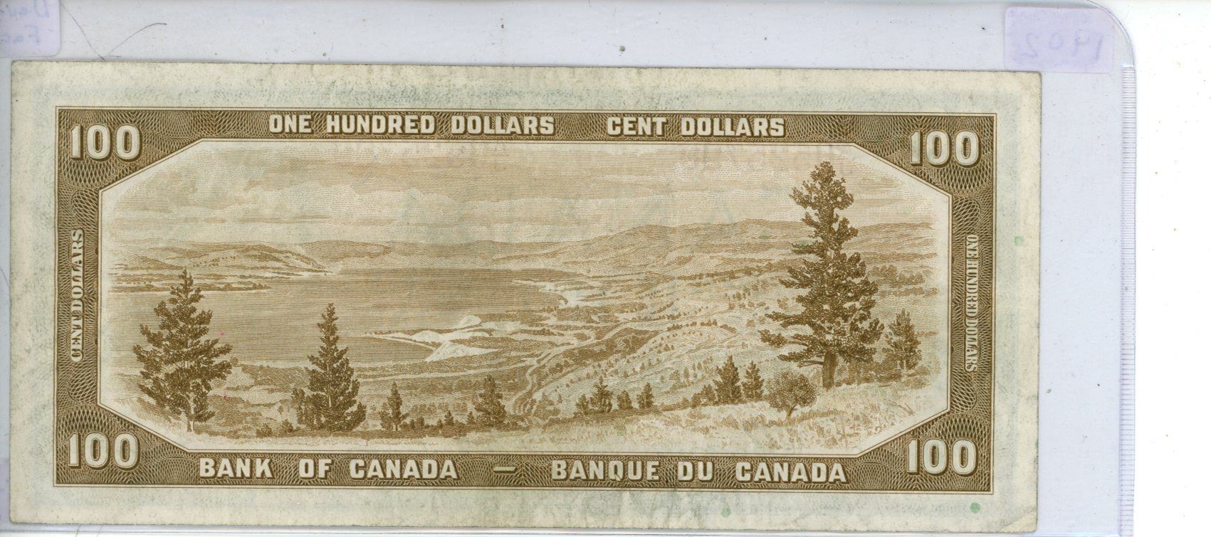 1954 Bank of Canada - One Hundred Dollar Bank Note - Devil's Face