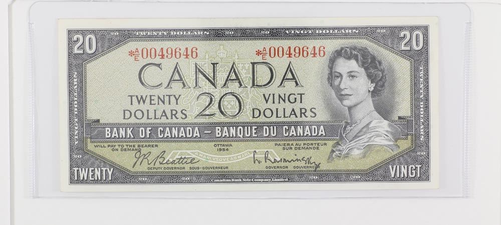 1954 Bank of Canada Replacement $20. BC-41bA, S/N: *A/E0049646. Note is in EF40 condition