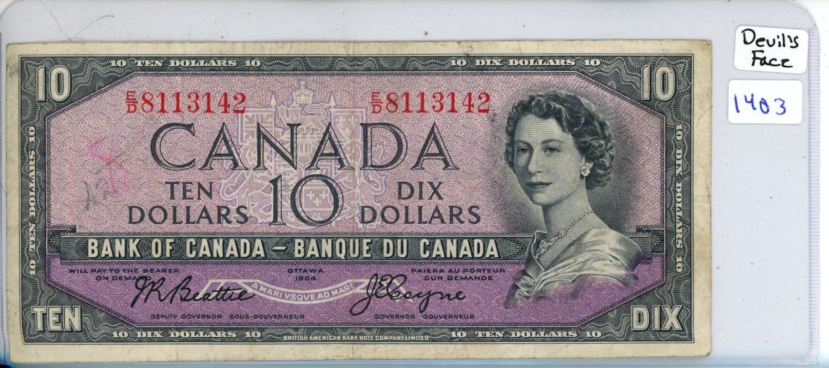 1954 Bank of Canada - Ten Dollar Bank Note - Devil's Face