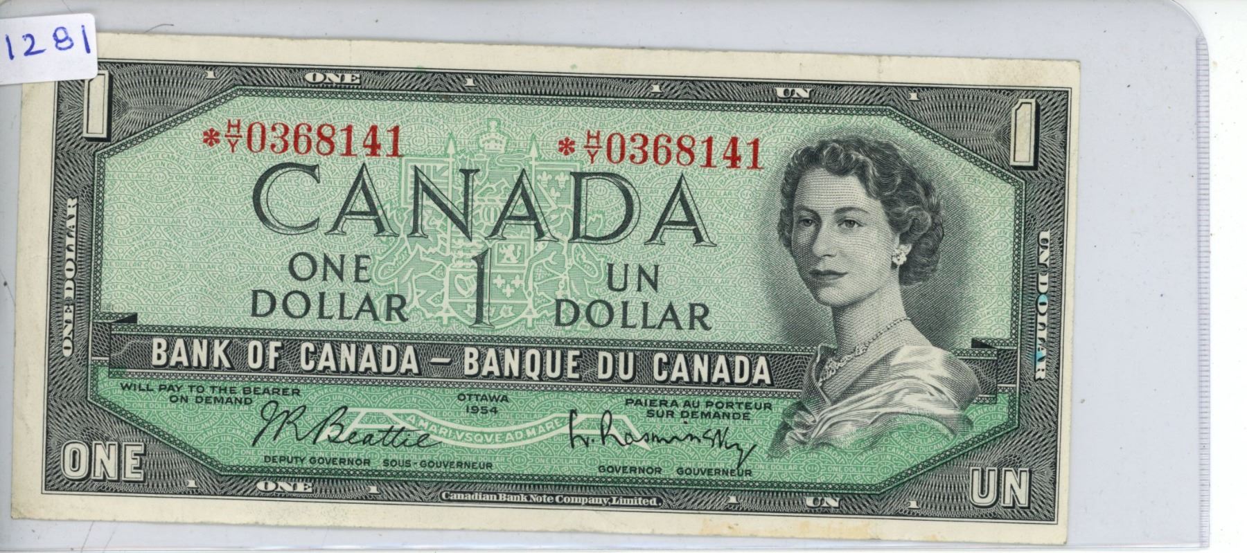 1954 Bank of Canada replacement One Dollar Bank Note.