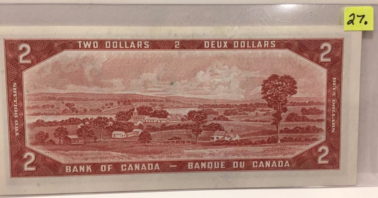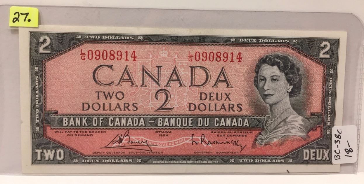1954 Bk of Canada Two Dollar Bill; Beattie/Rasminsky; SN L/G 0908914