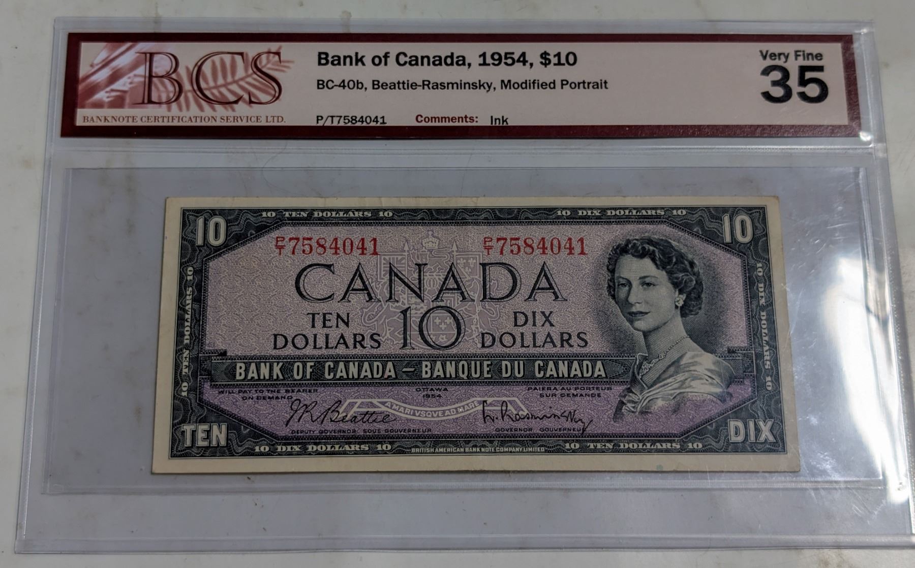 1954 CANADA $10 BANKNOTE CERTIFIED