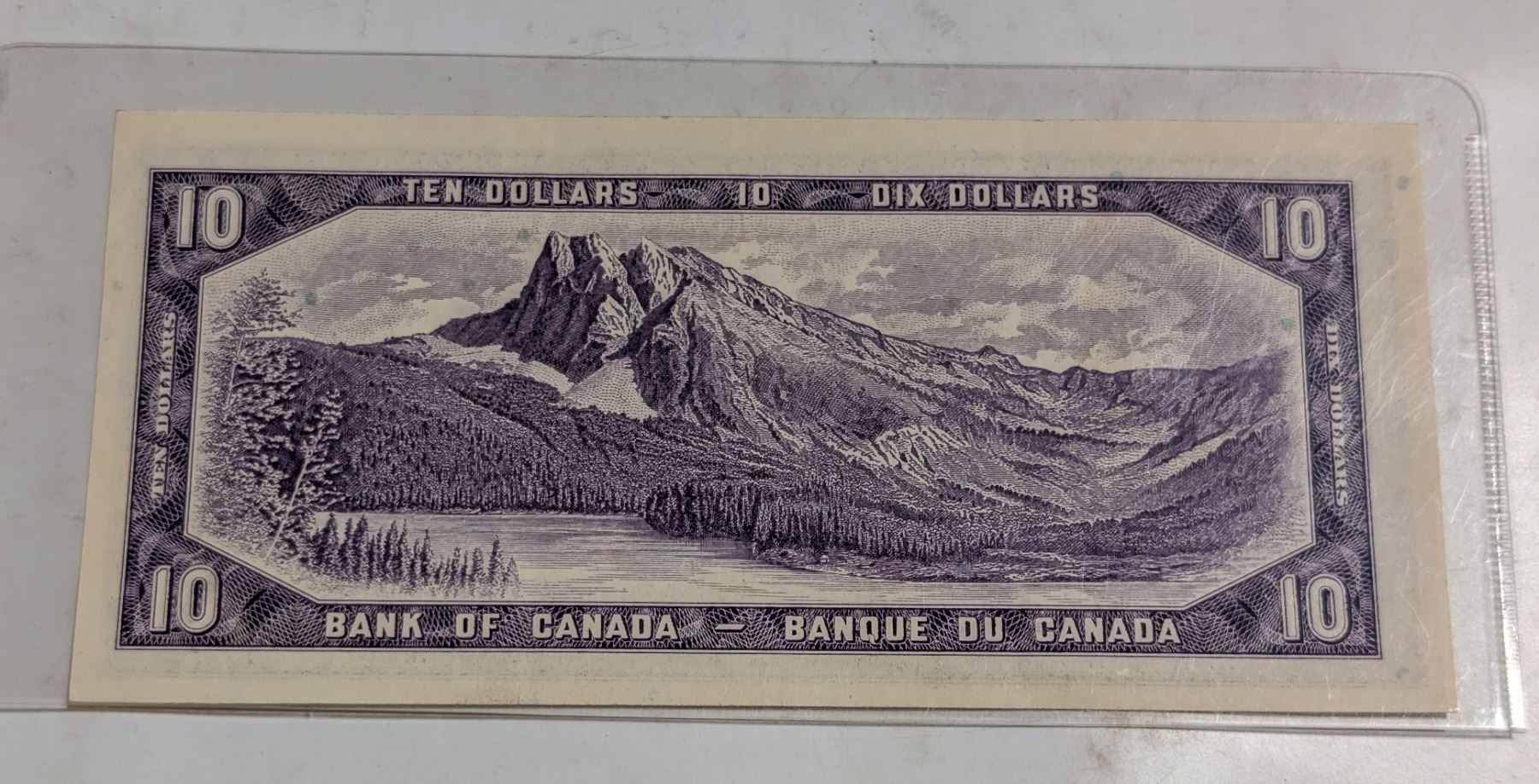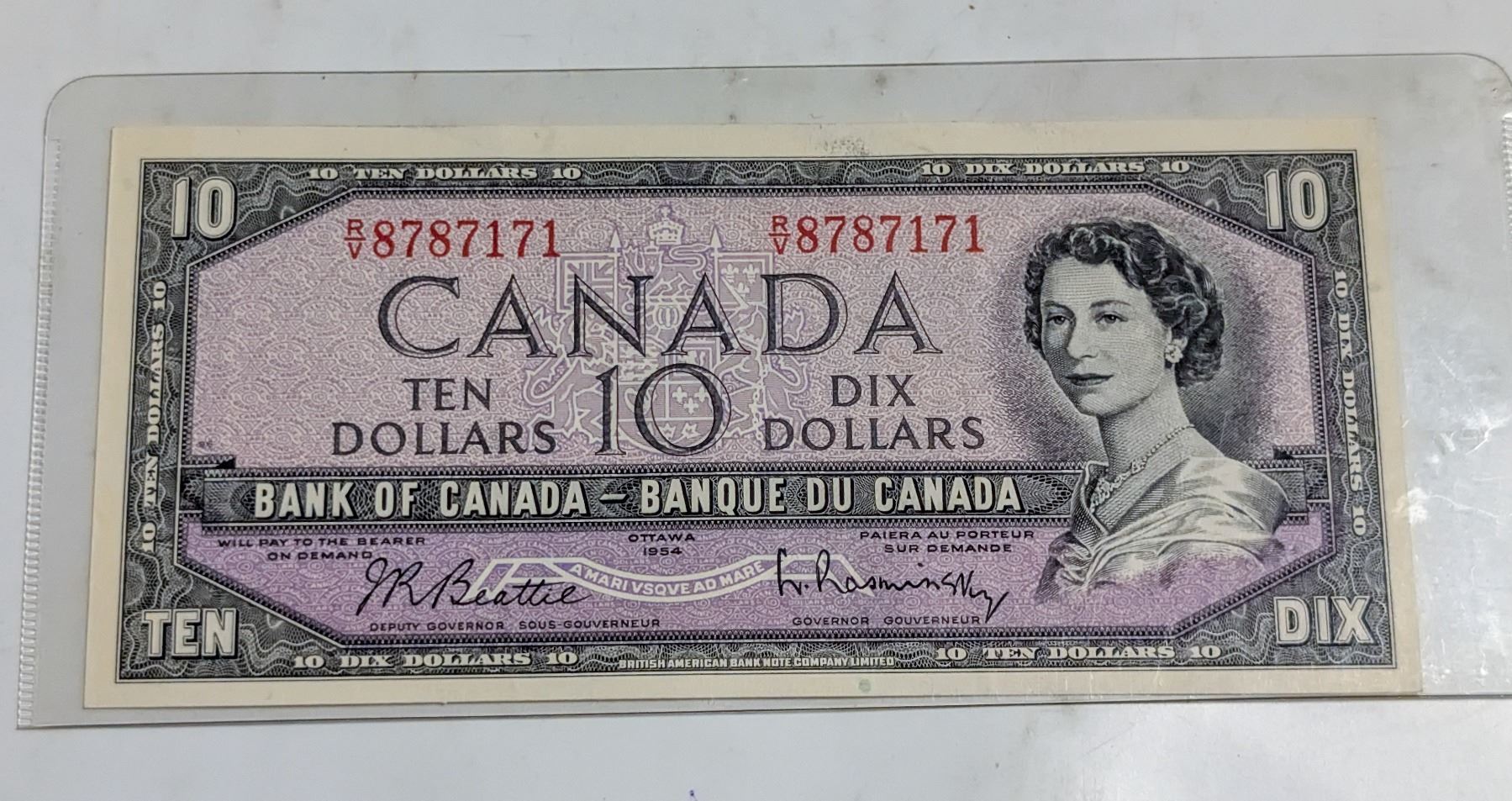 1954 CANADA $10 BANKNOTE. REPEATER SERIAL NUMBER.