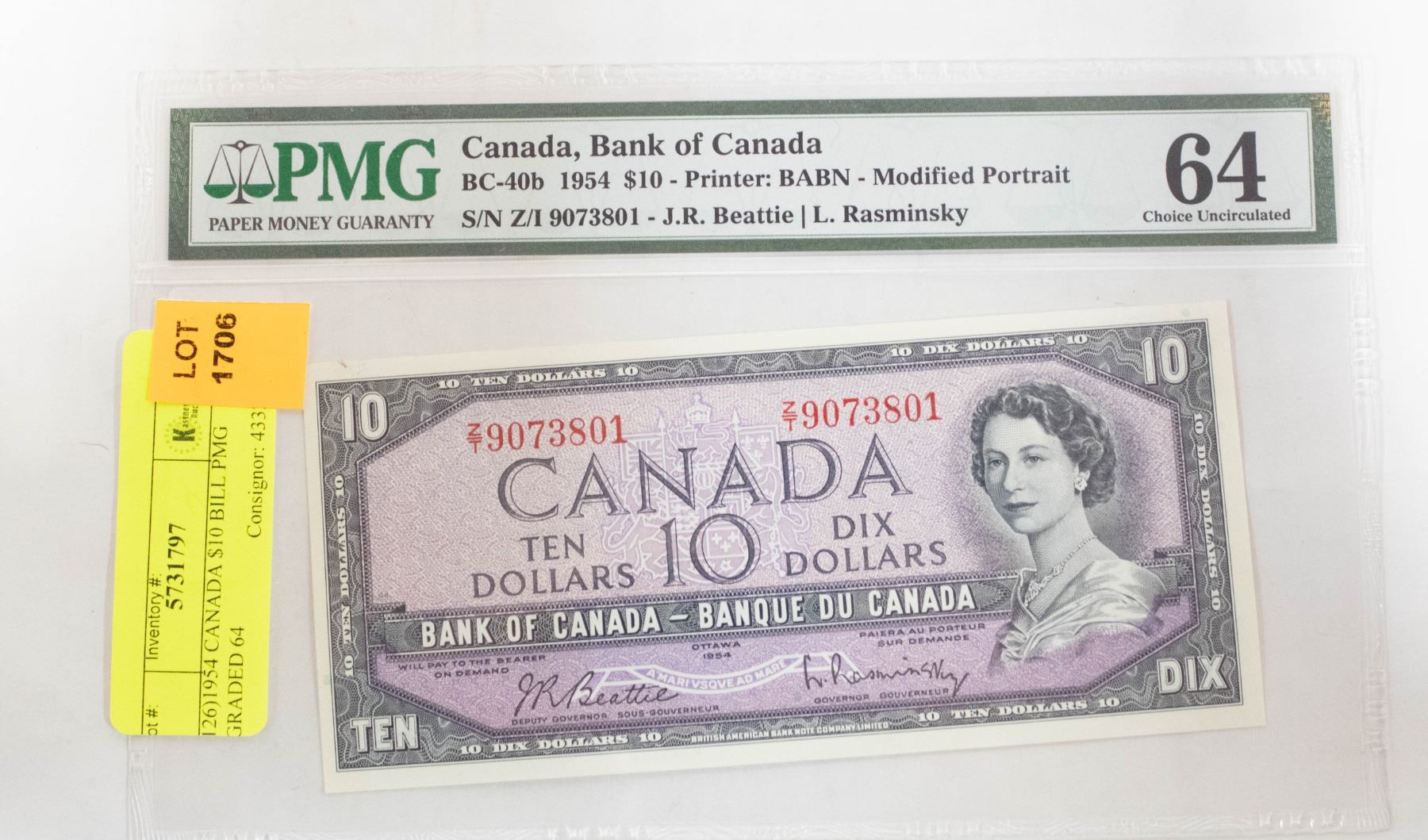 1954 CANADA $10 BILL PMG GRADED 64