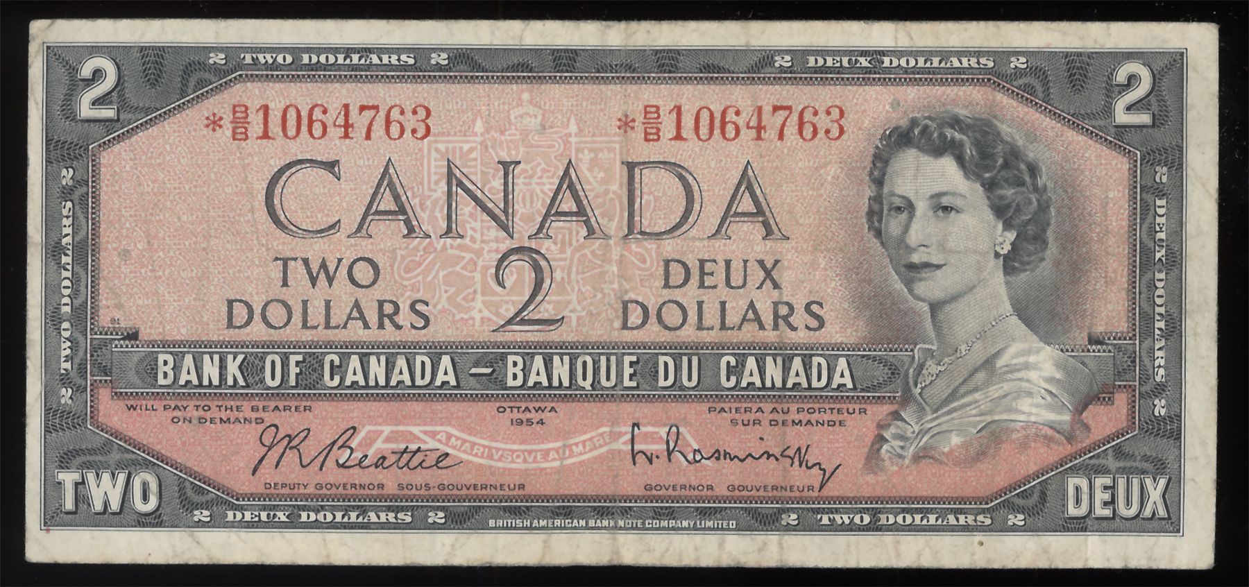 1954 CANADA BEATTIE-RASMINSKY 2 DOLLAR NOTE