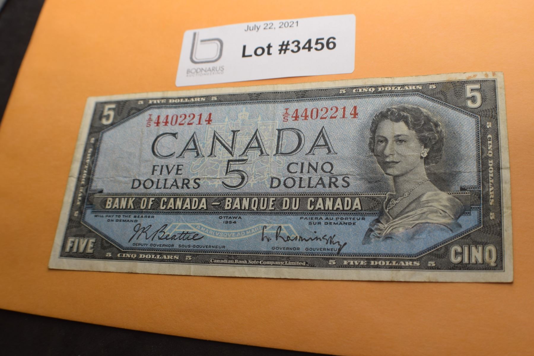 1954 CANADA CANADIAN $5 MONEY BILL BANK NOTE