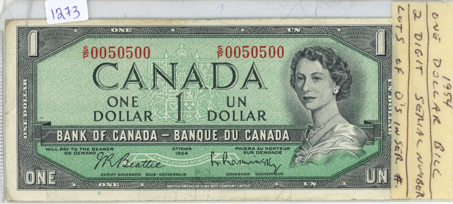 1954 CANADIAN 1$ BILL- 2 DIGIT RADAR NOTE