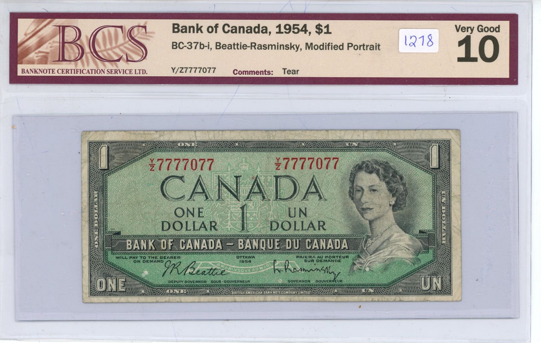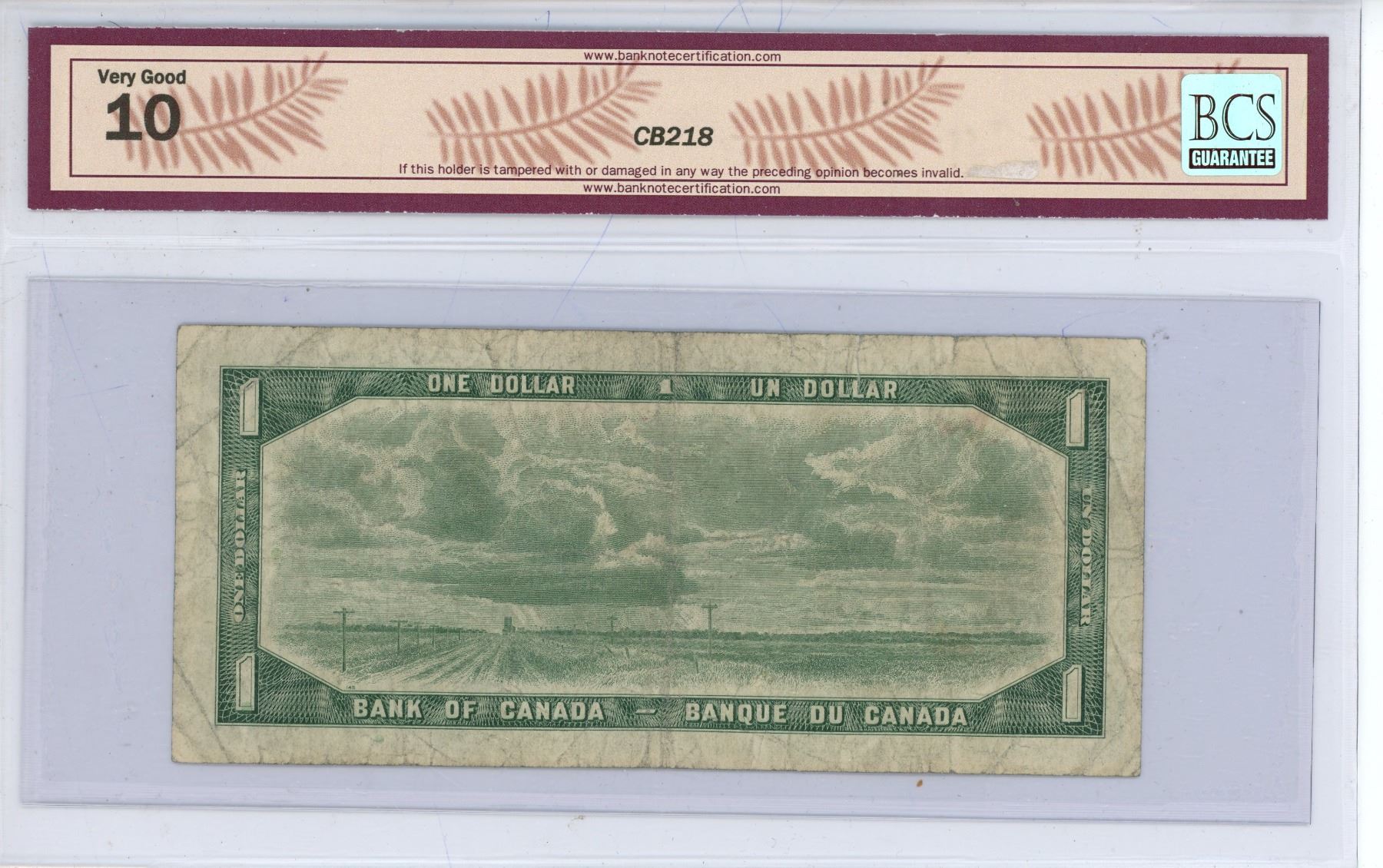 1954 CANADIAN 1$ BILL- BCS GRADED VG10