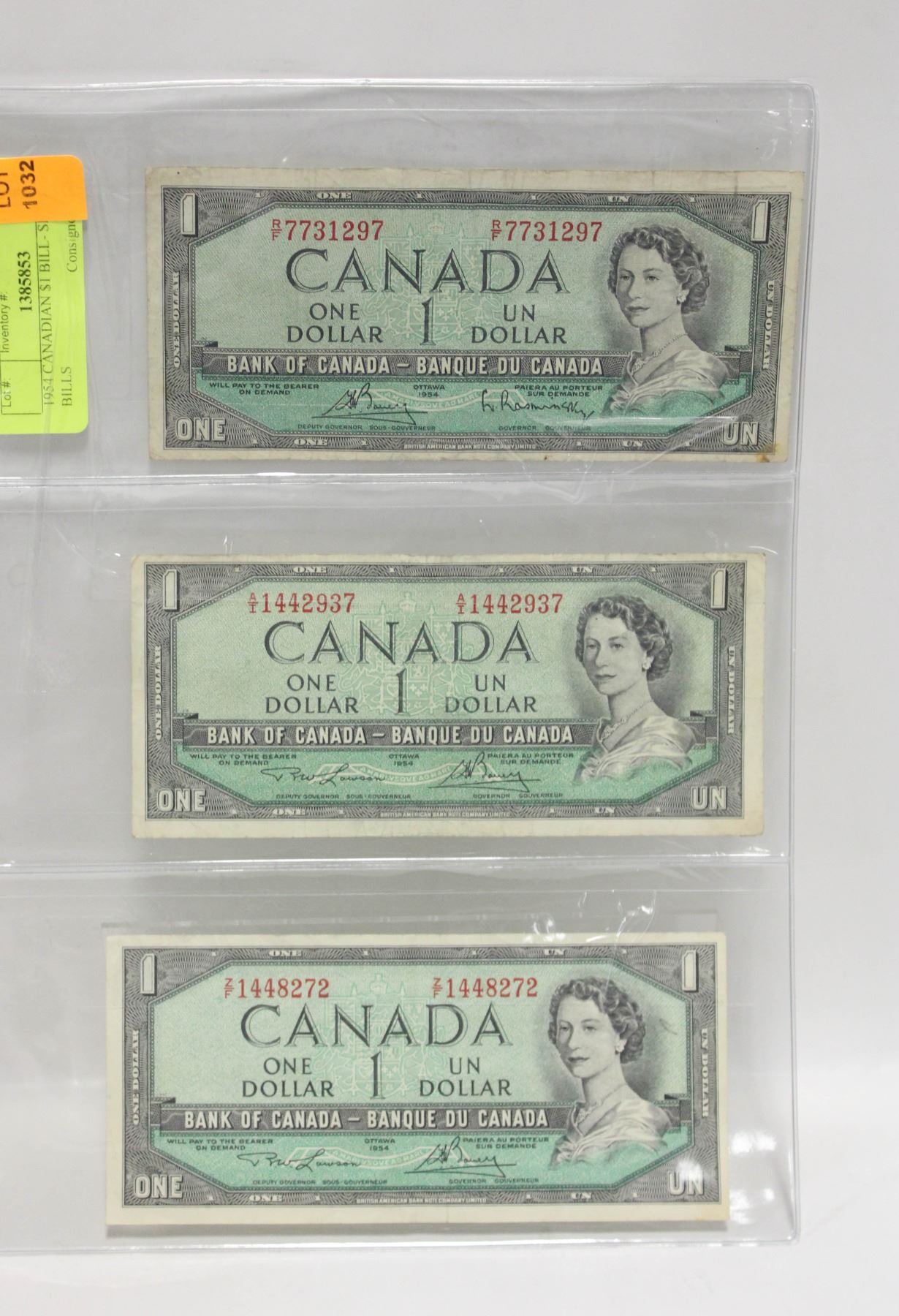 1954 CANADIAN $1 BILL- SET OF 3 BILLS