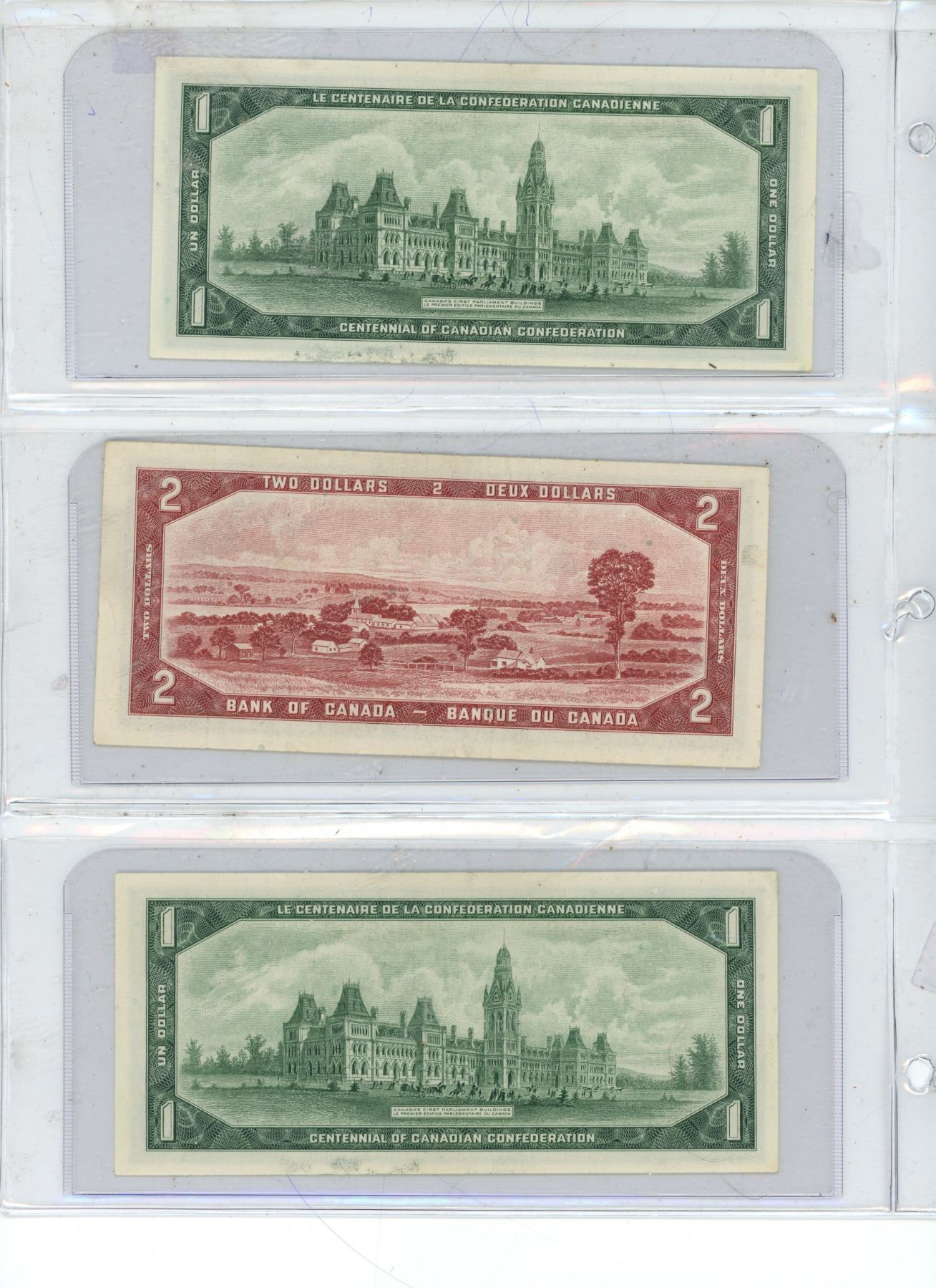1954 CANADIAN 2$ BILLS. 2-1967 1$ BILLS.