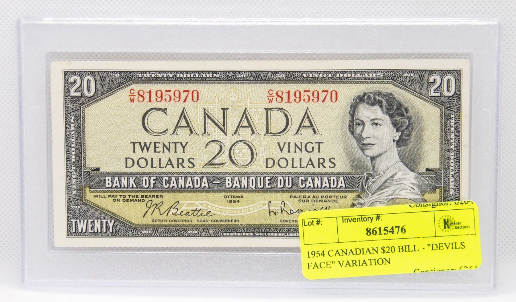 1954 CANADIAN $20 BILL IN HARDCASE
