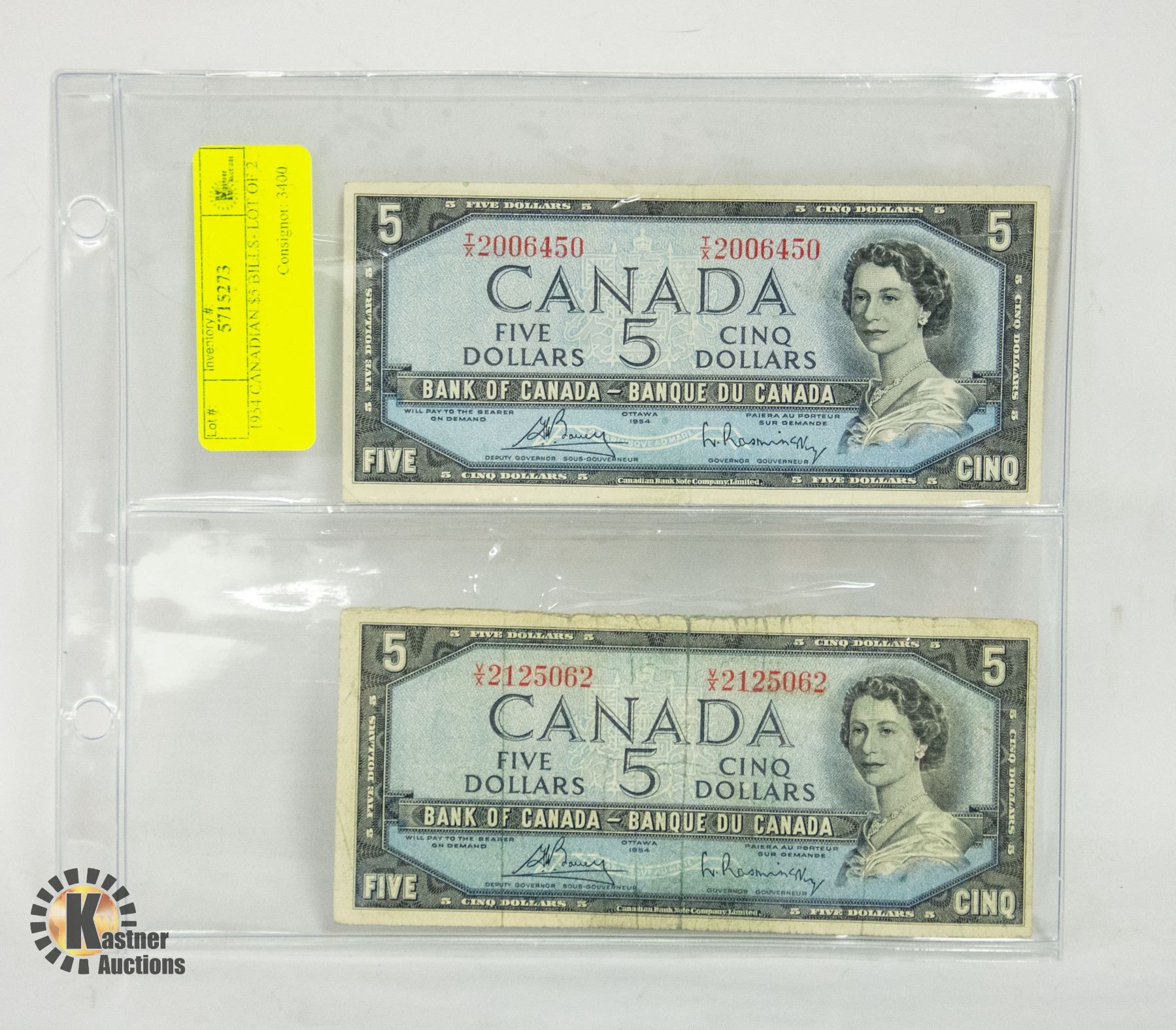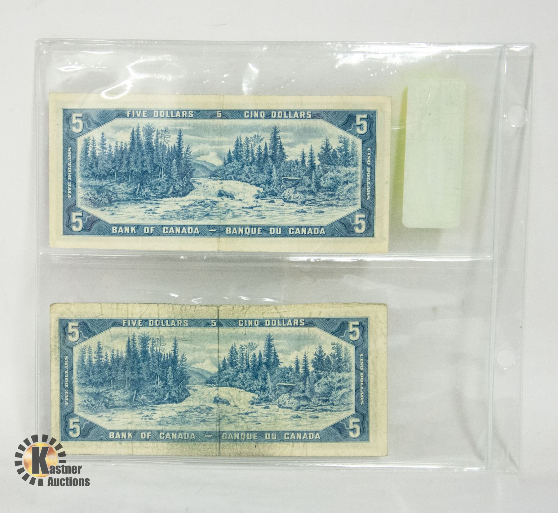 1954 CANADIAN $5 BILLS- LOT OF 2