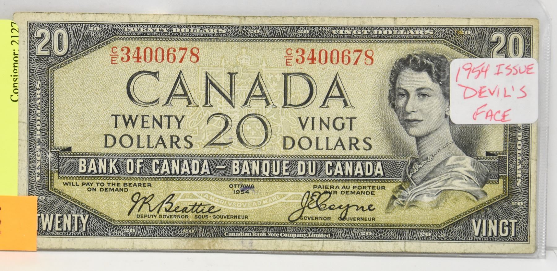 1954 CANADIAN DEVILS FACE $20 BILL