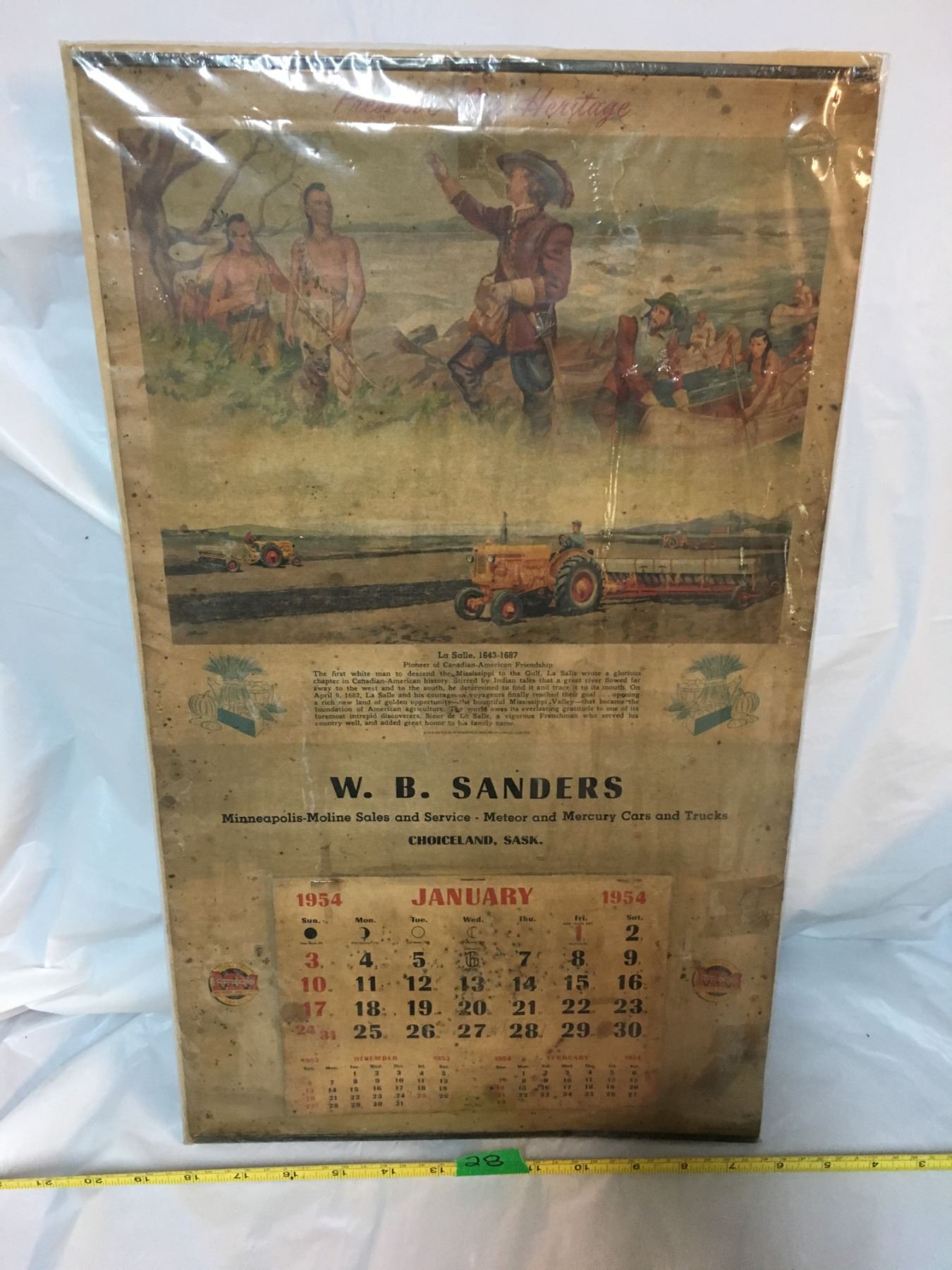 1954 CHOICELAND, SASK, DEALER CALENDAR, INTACT