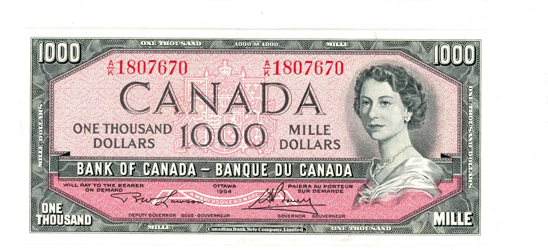 1954 Canada 1000 dollar bill s/n 1807670 consecutive 2 of 2