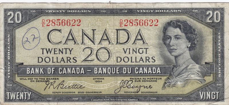 1954 Bank Of Canada $20 Davil's Face Bank Note - Beattie/Coyne - BC-33B -- Book Value $77