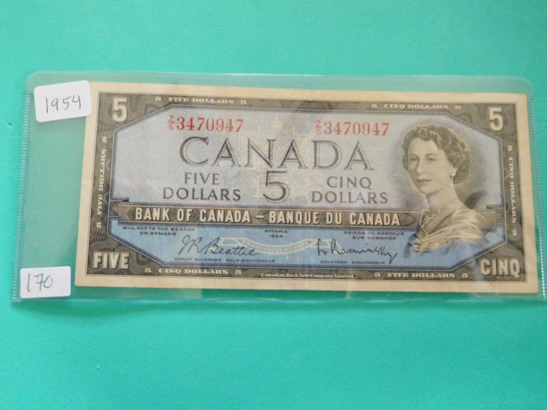 1954 Canada Five Dollar Bill Z/S3470947 Beattie/Rasminsky