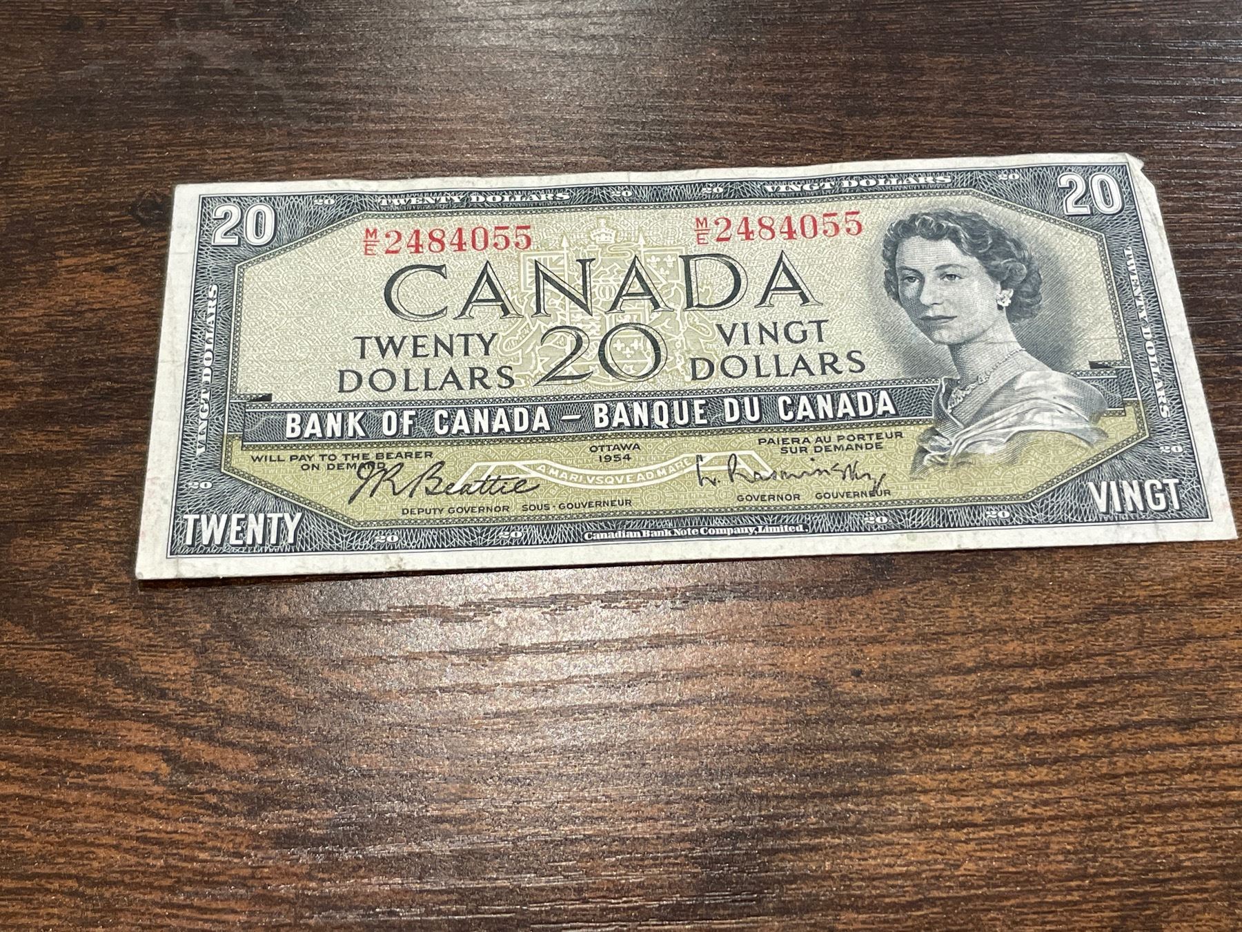 Beattie/Rasminski Signatures with winter scene on reverse. 1954 issue.