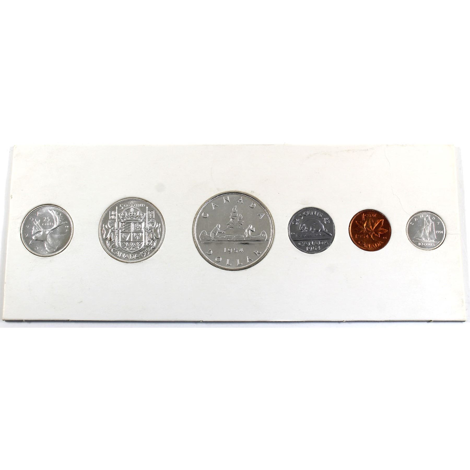 1954 Canada 'No Shoulder Fold' Proof Like Set in Original White Cardboard. Set contains bright coins with hints of light toning.