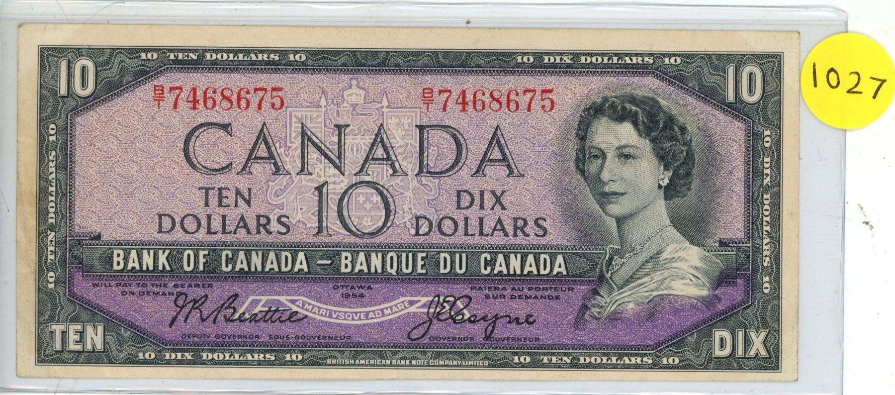 1954 Canada Ten Dollar Bill, Beattie/Coyne (# B/T 7468675)