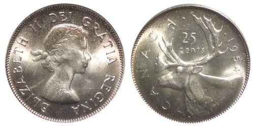 0279 - 1954 Canada Twenty-Five Cents-PCGS MS64
