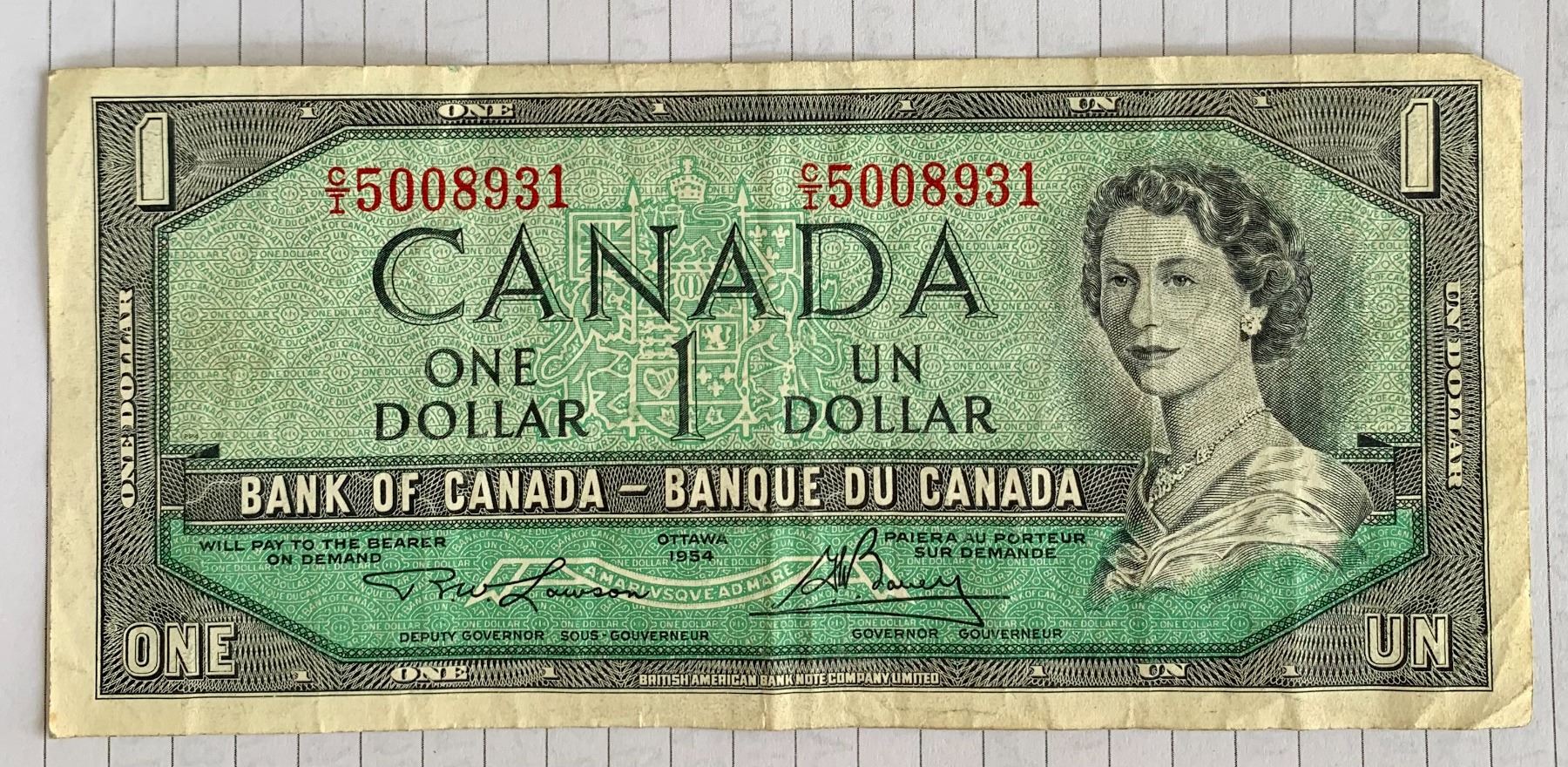1954 Canadian $1.00 Bill ending in 8931