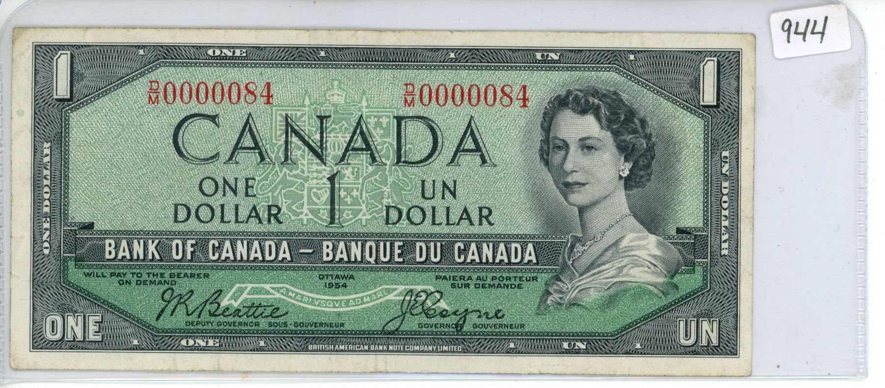 1954 Canadian $1 Bill - Low Serial #