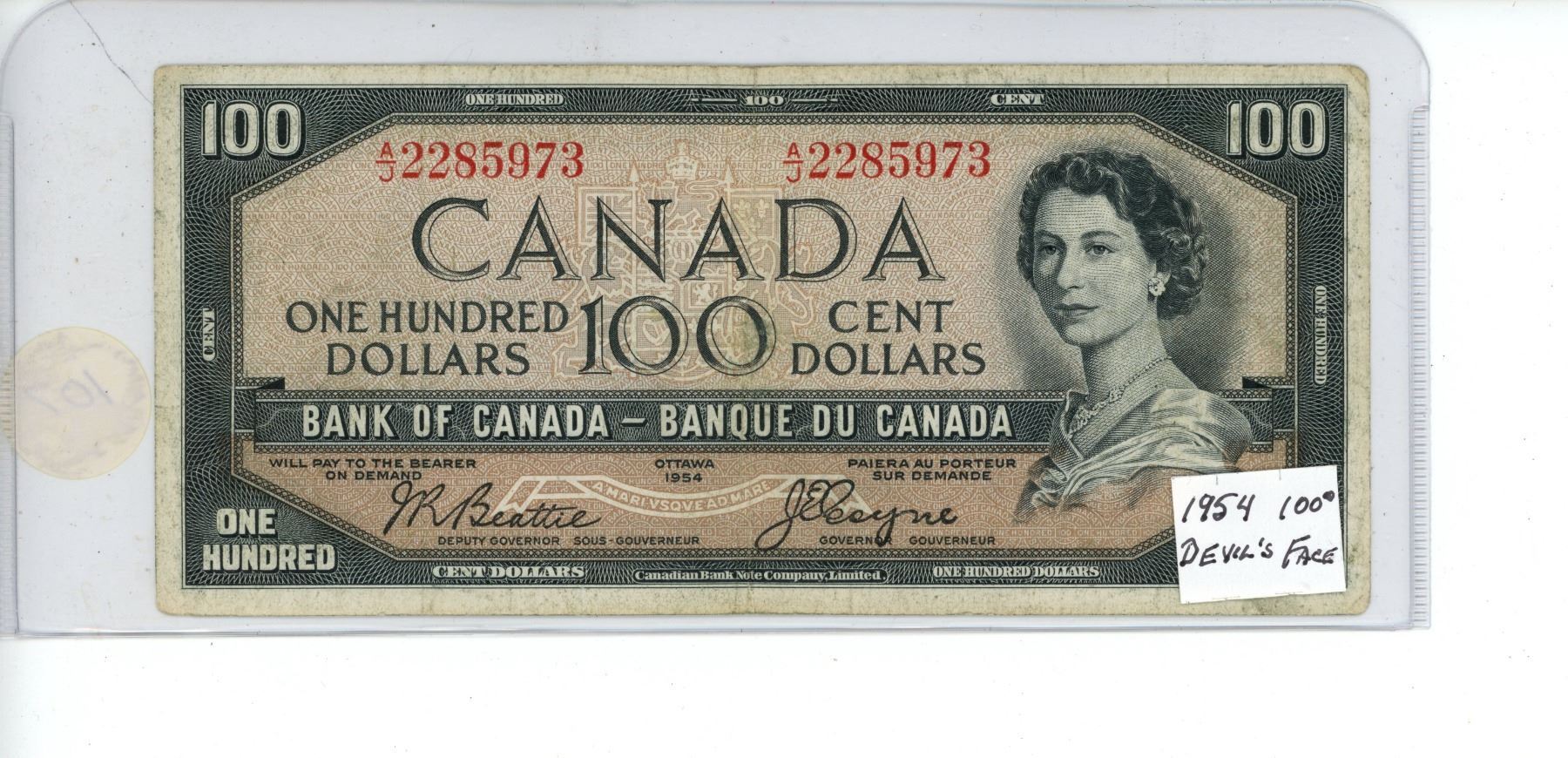 1954 Canadian $100 bill *Devils Face*