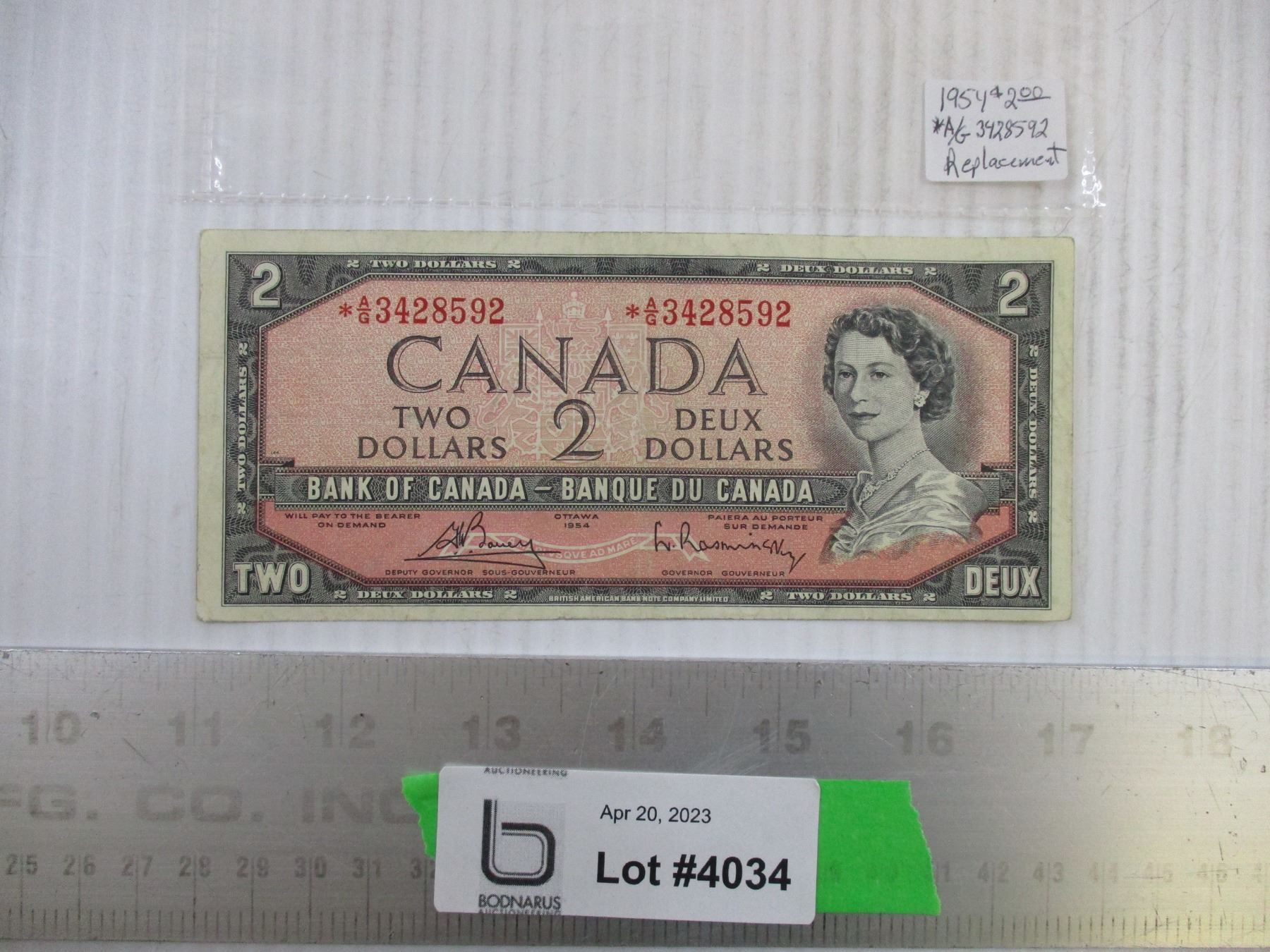 1954 Canadian $2 Bill (A/G 3428592 Replacement)