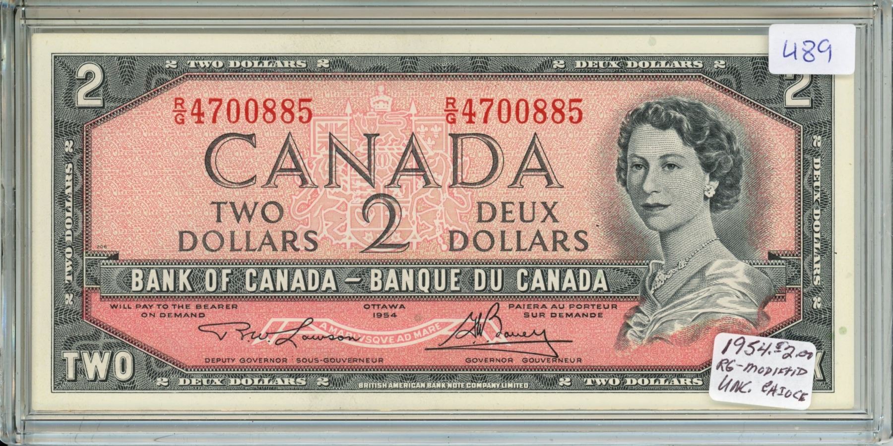 1954 Canadian 2 Dollar Bill, Lawson/Bouey, R/G4700221, RG Modified, Choice-UNC