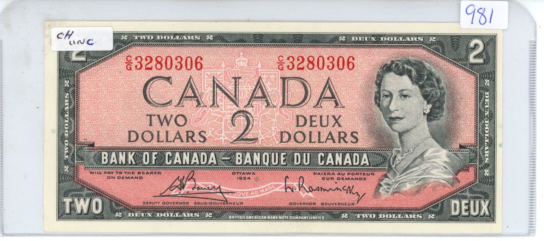 1954 Canadian $2 bill - Bouey/Rasminsky - C/G prefix - 3280306