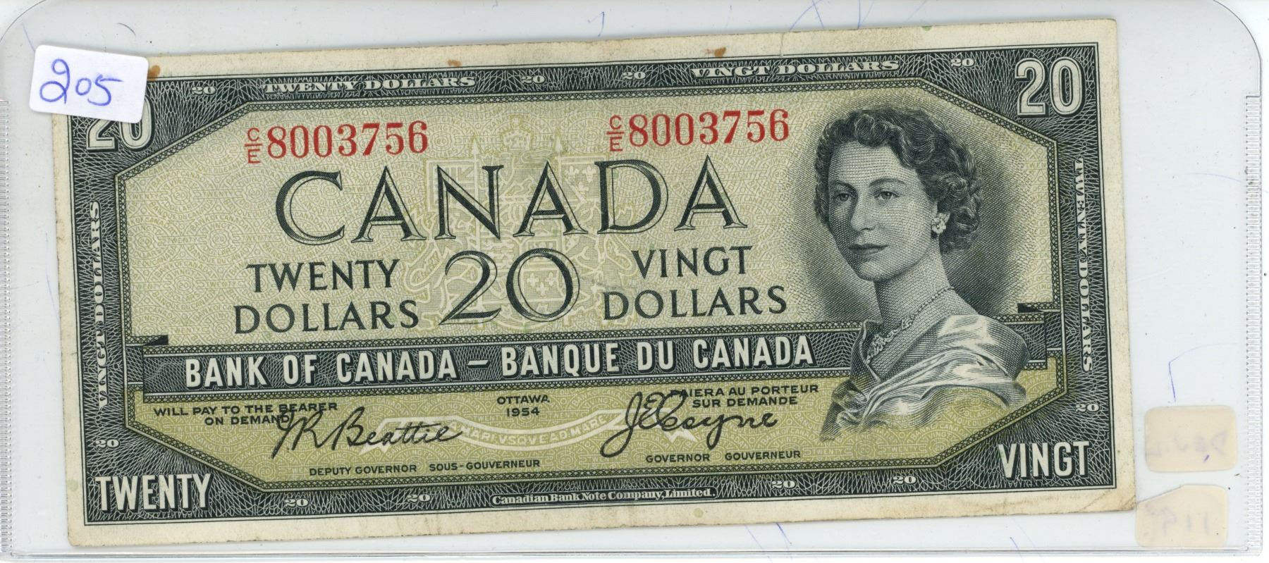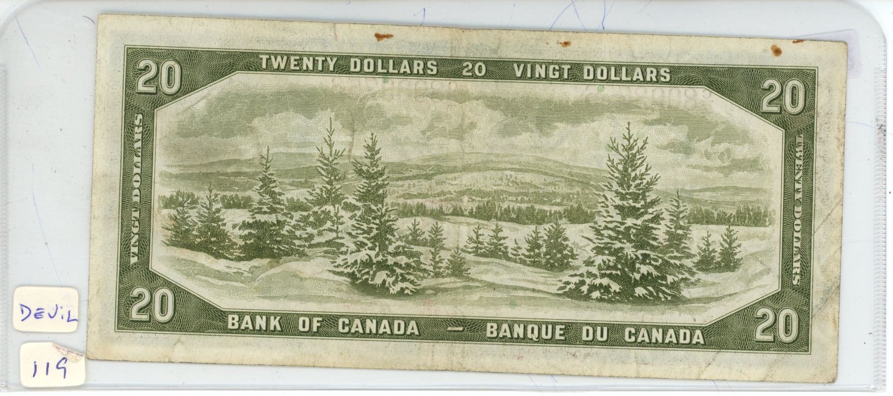 1954 Canadian 20 Dollar Bill - Devil's Face