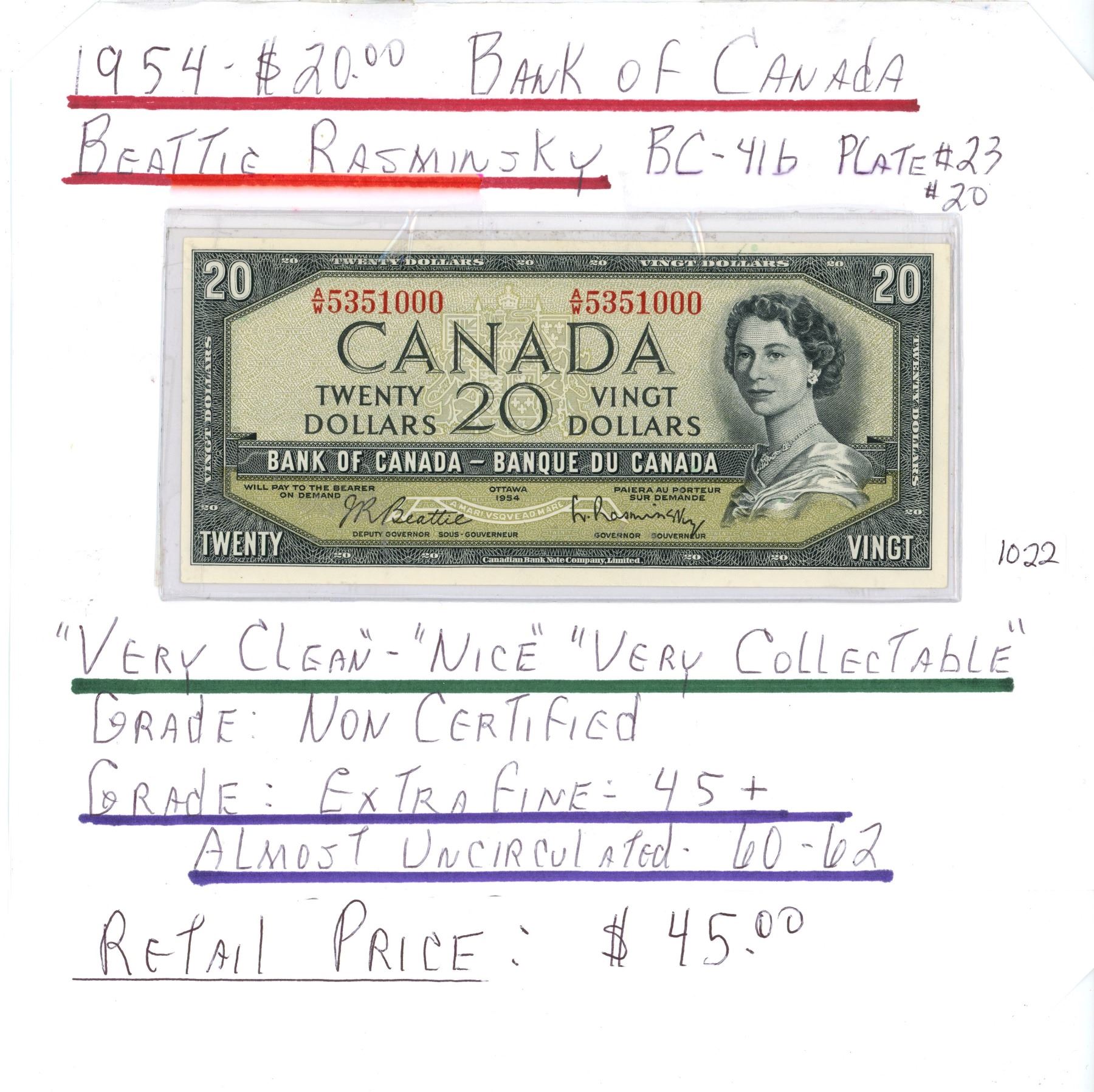 1954 Canadian 20 Dollar bill - Beattie-Rasminsky, BC-41b