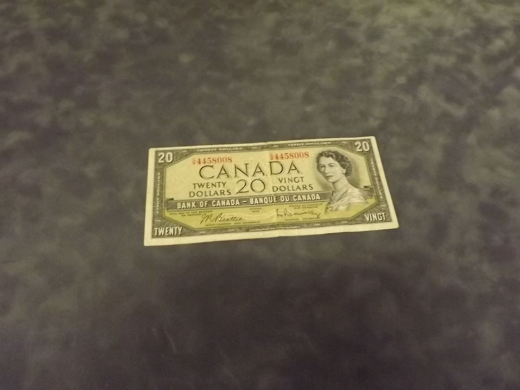 1954 Canadian $20 Dollar bill. Circulated. (D&am...