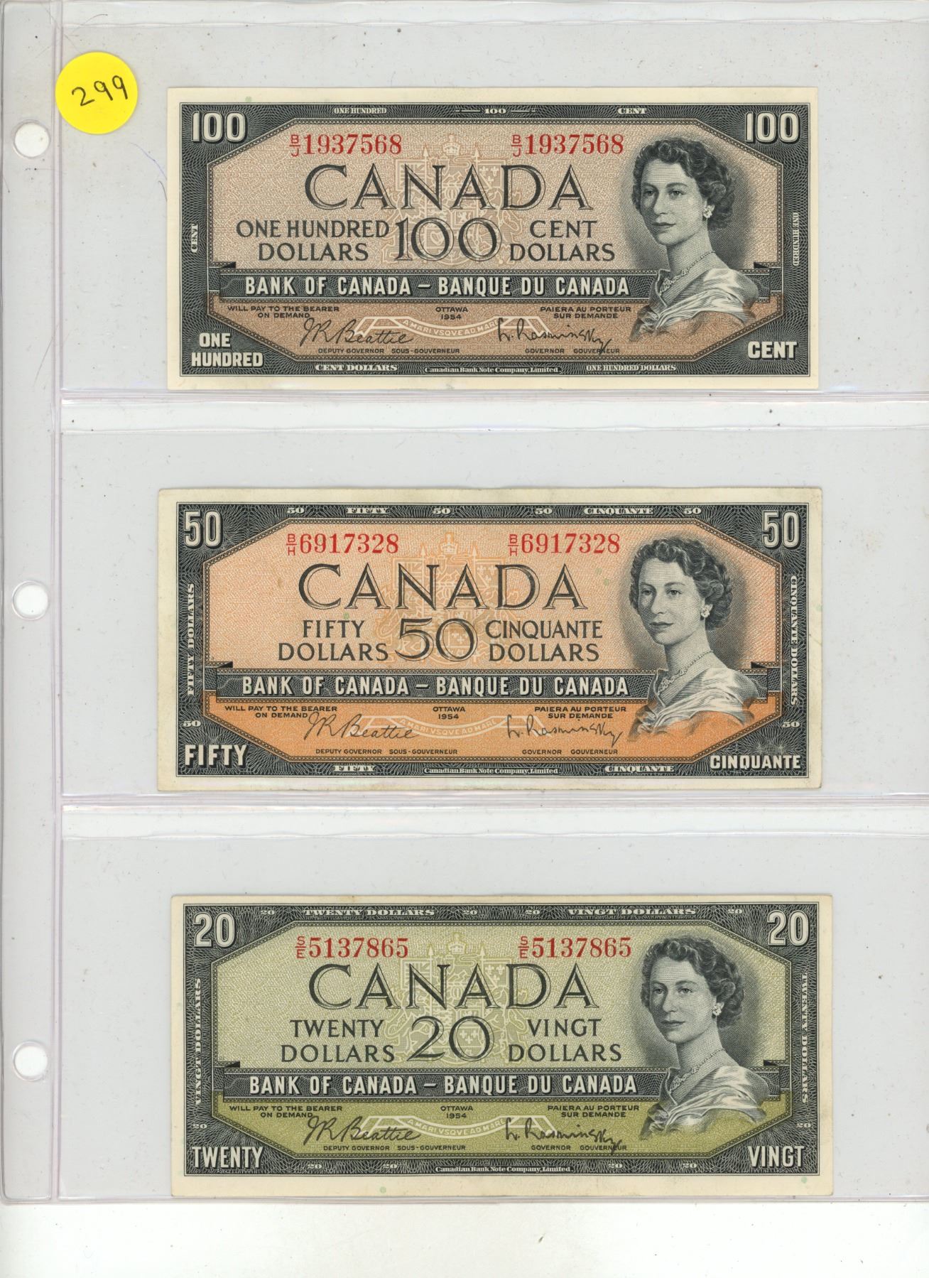 1954 Canadian Currency Set. (It includes 100, 50, 20, 10, 5, 2, 1 Dollars)