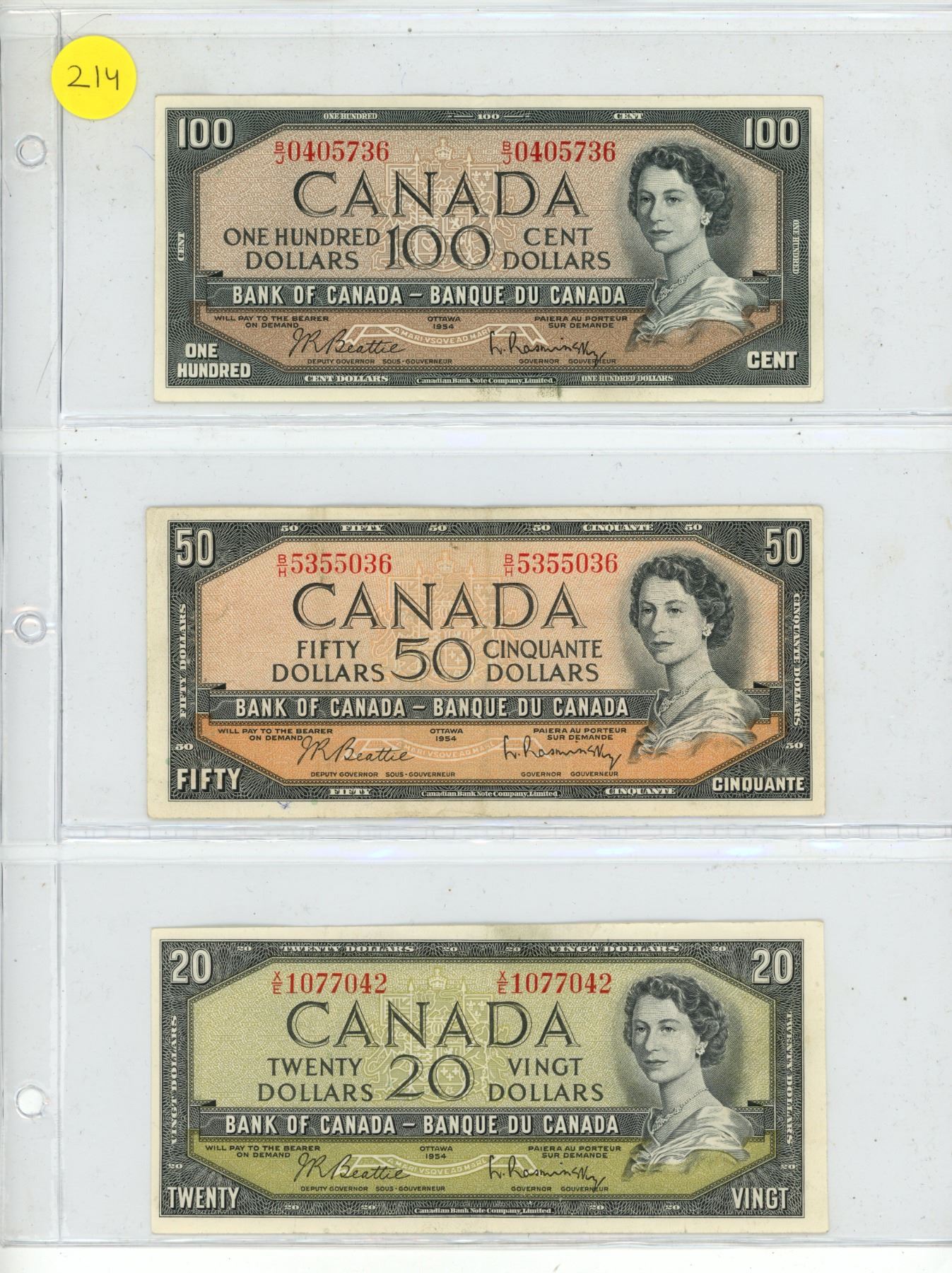 1954 Canadian Currency Set.