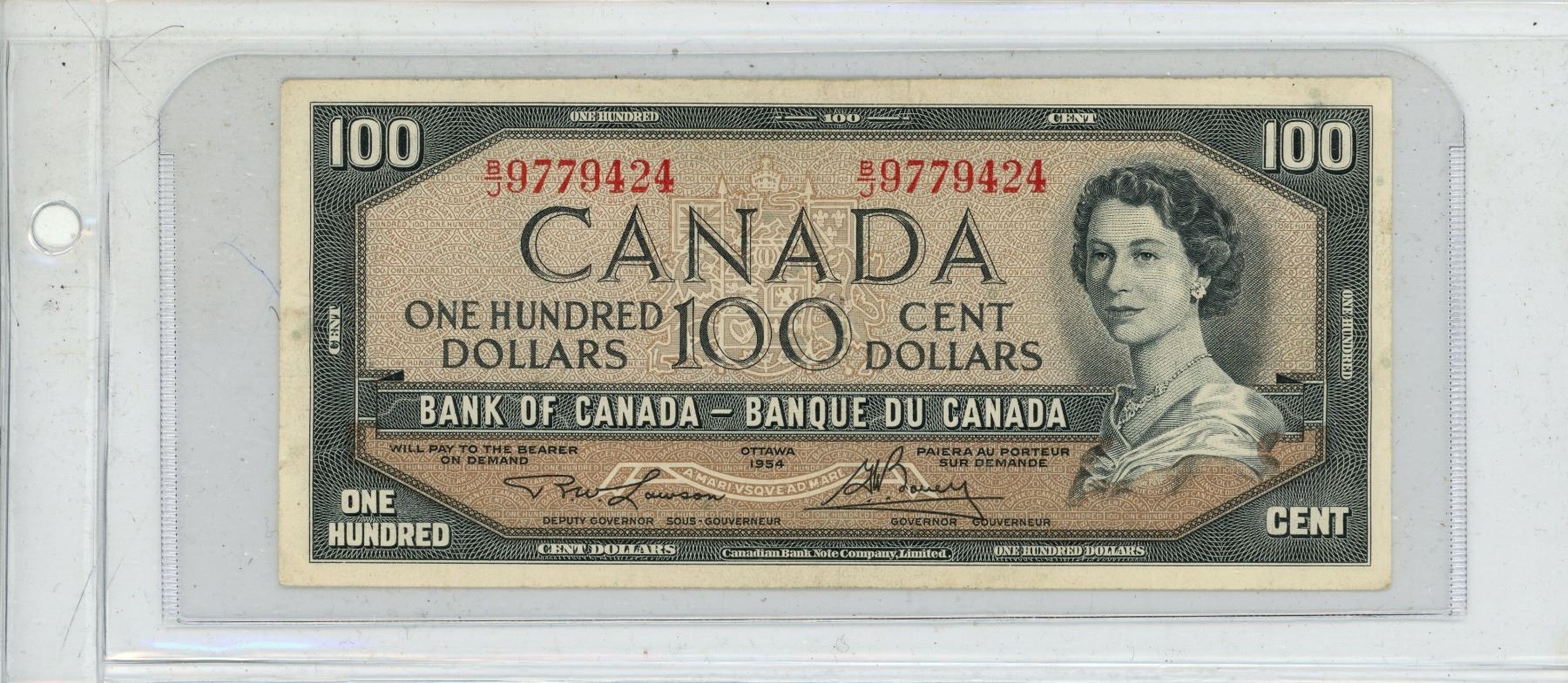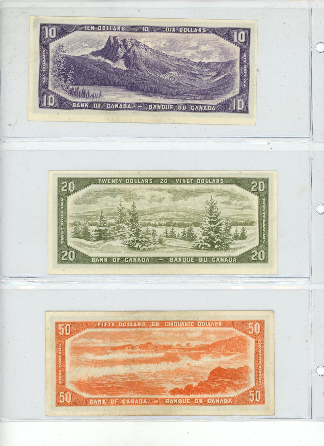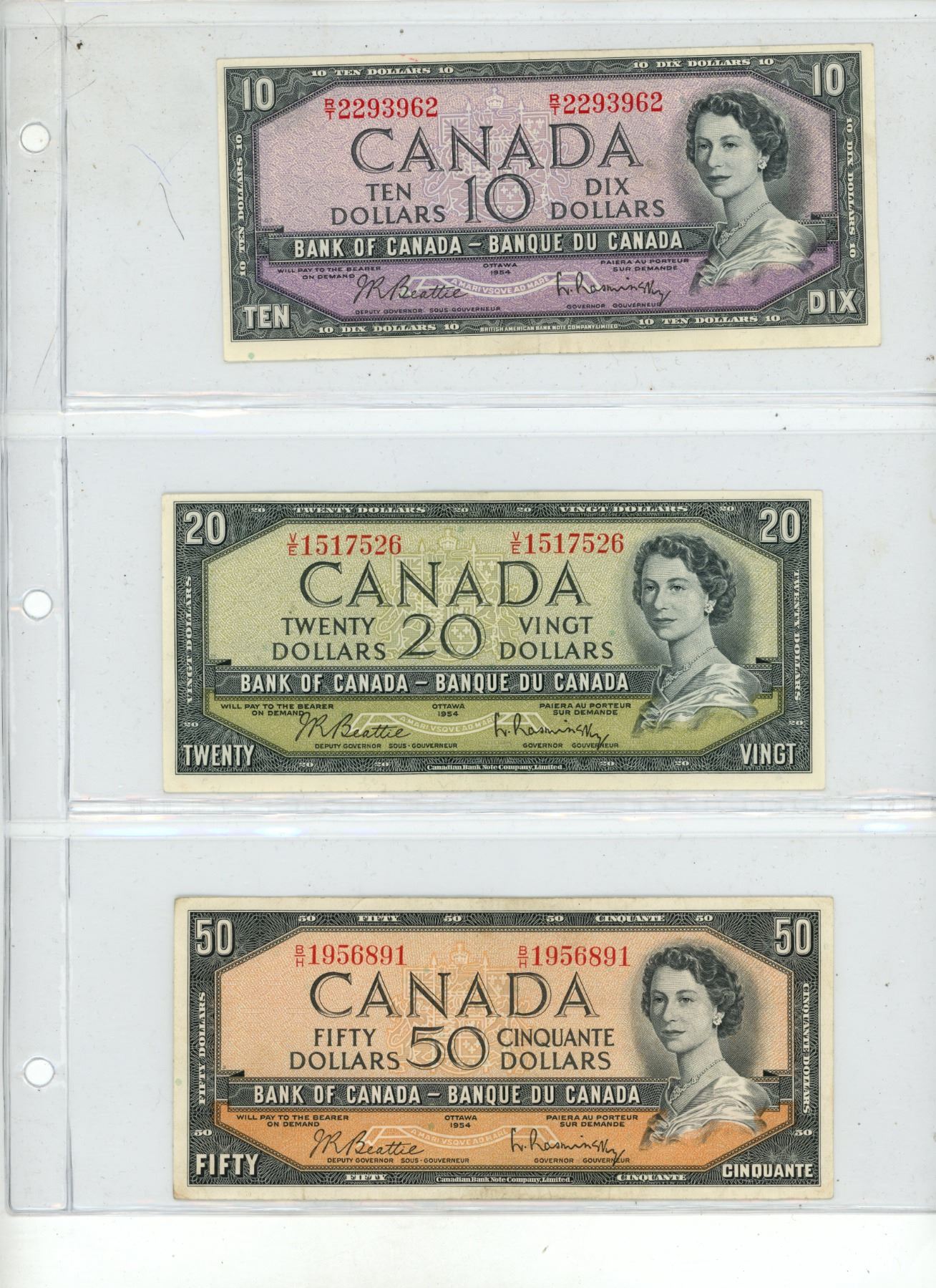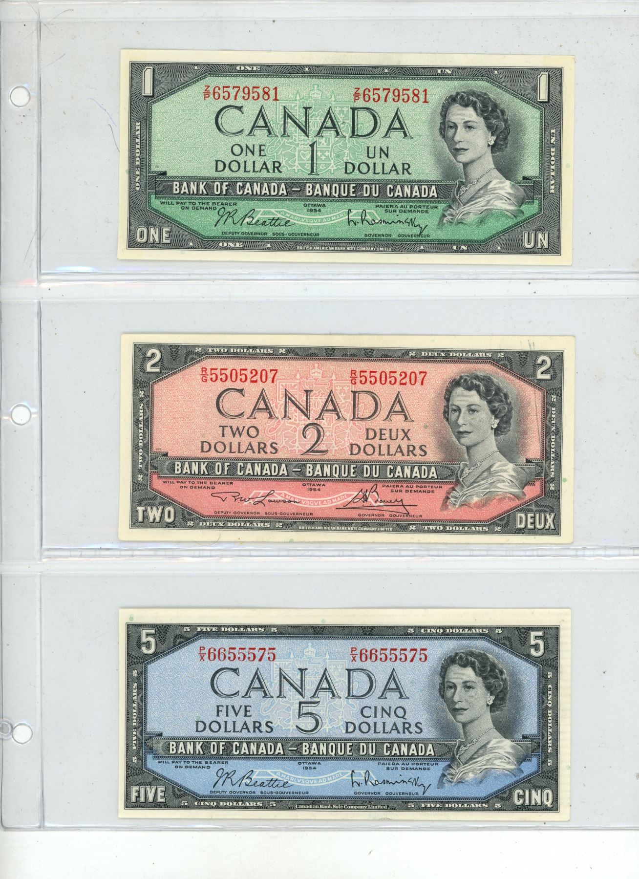 1954 Canadian Dollars Set. (It Includes One, Two, Five, Ten, Twenty, Fifty and Hundred)