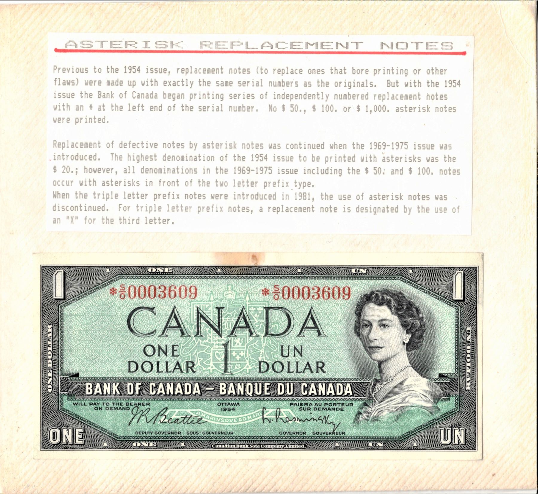 1954 Canadian One Dollar Bill - Asterisk Replacement Note
