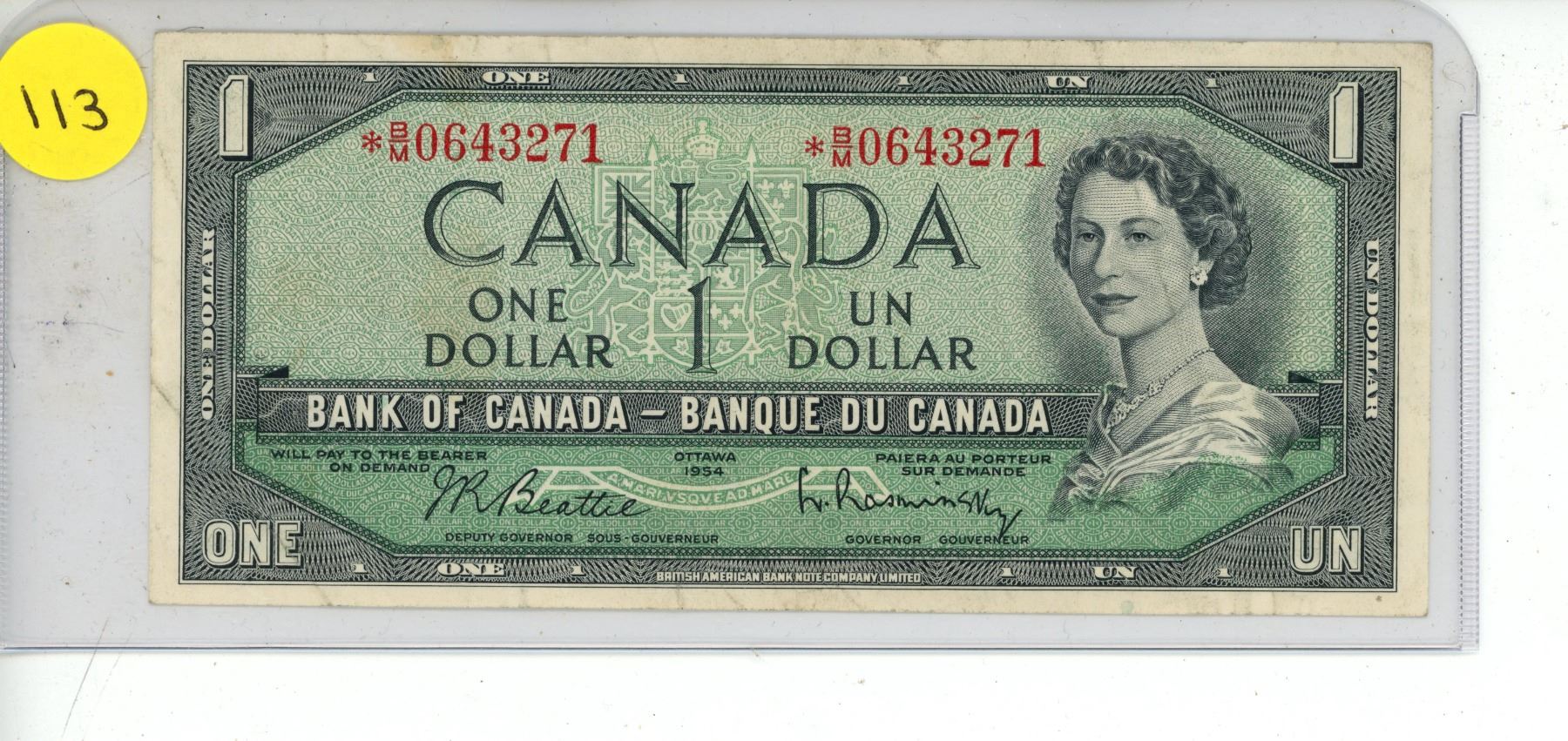 1954 Canadian One Dollar.
