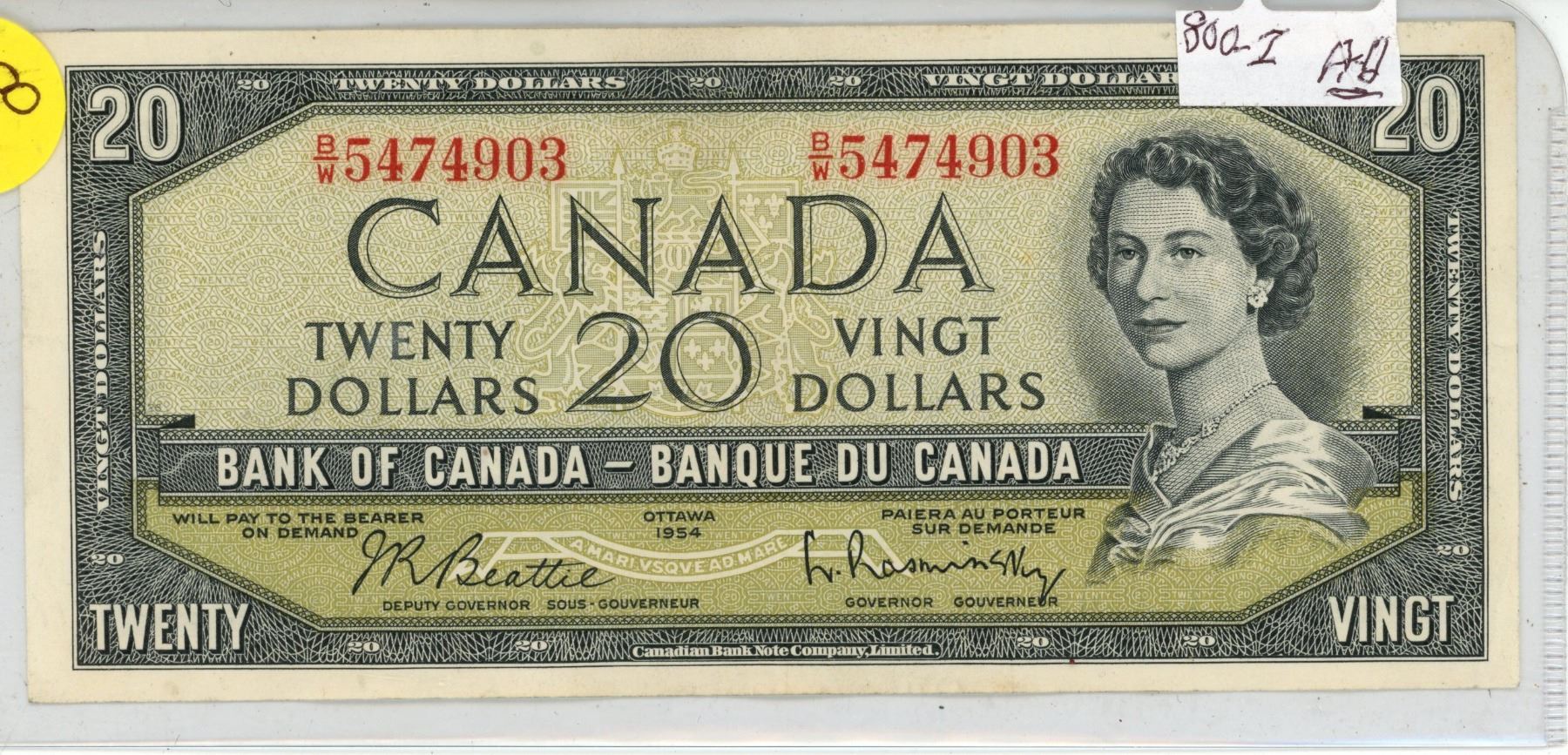 1954 Canadian Twenty Dollar.
