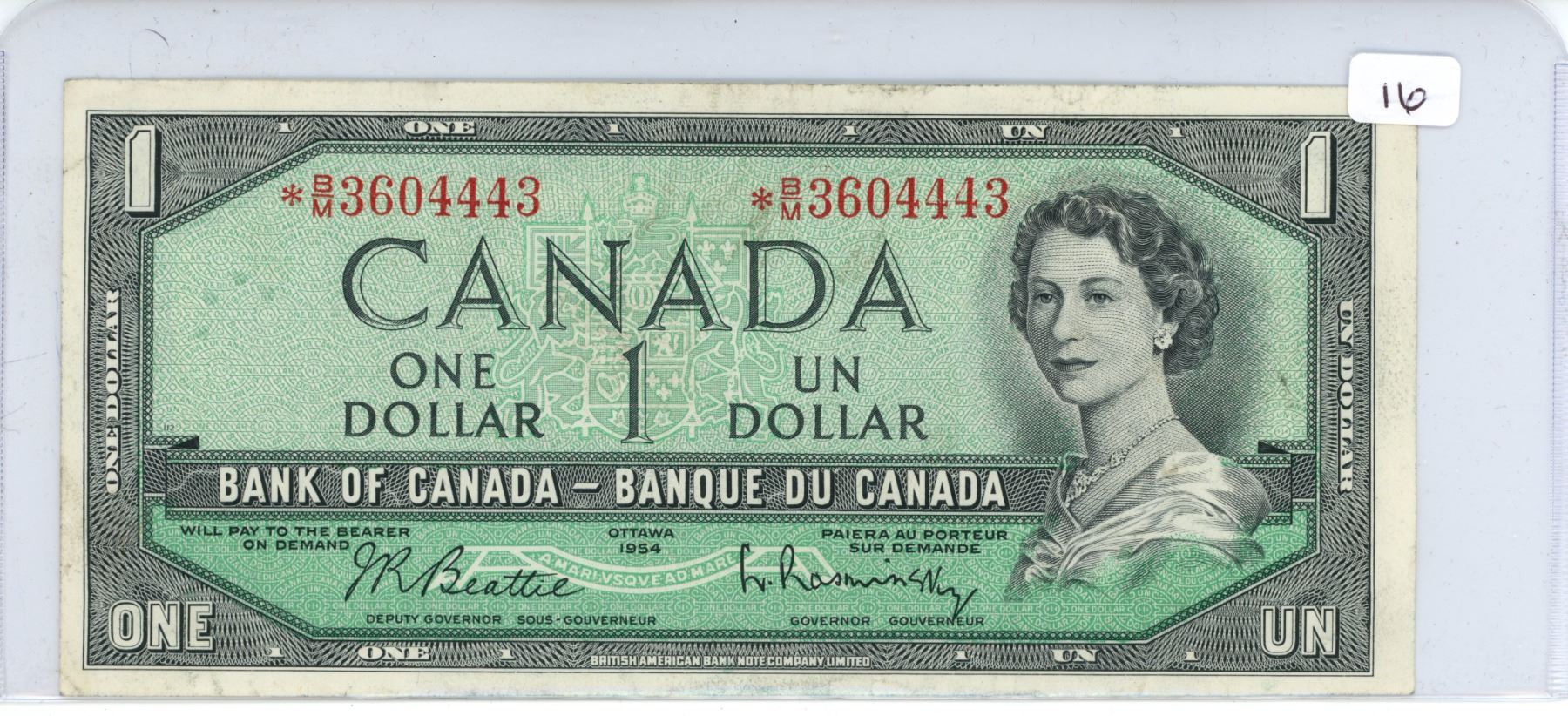 1954 Canadian replacement one dollar bill