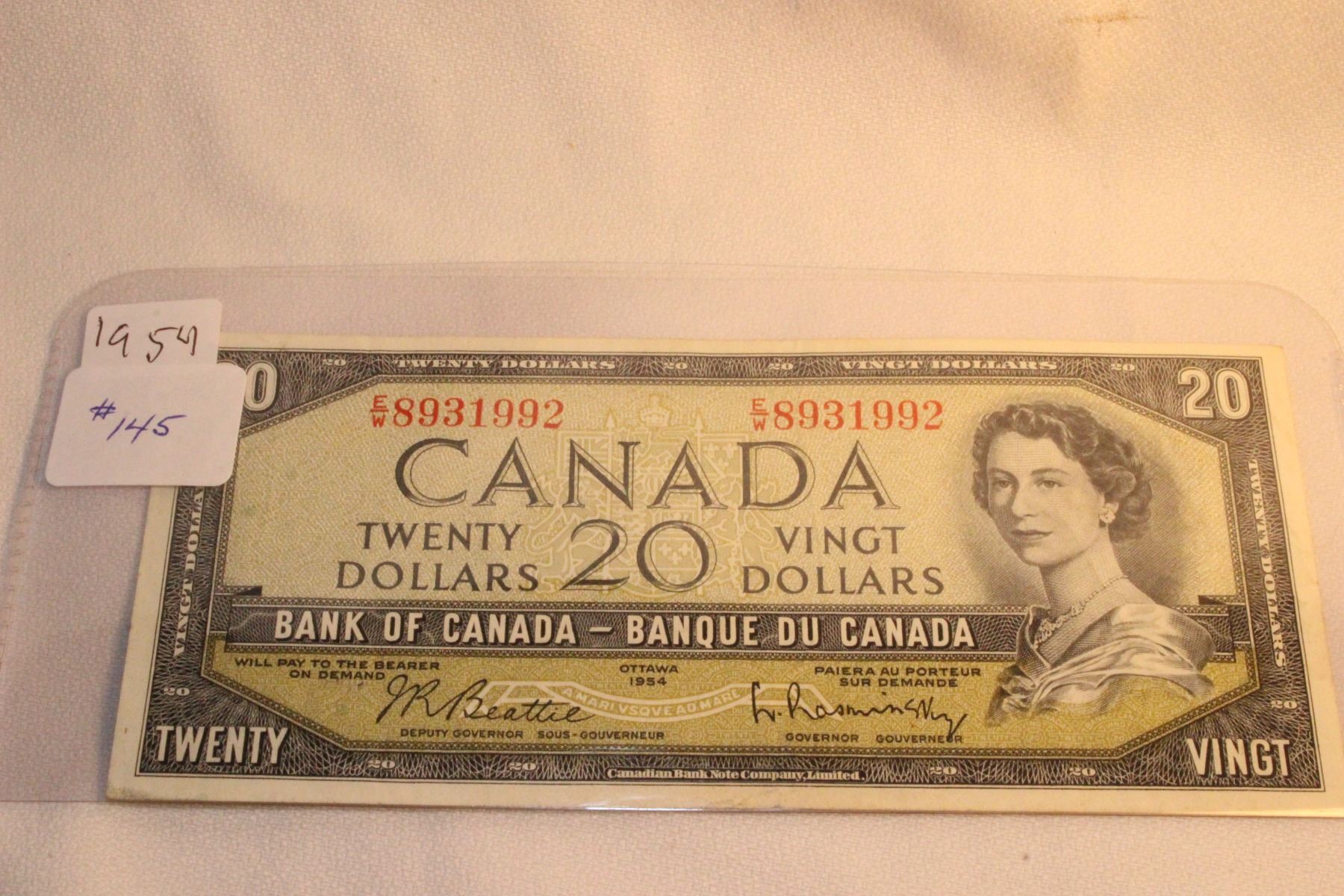 1954 Cdn. Twenty Dollar Bill (Beattie/Rasminsky)