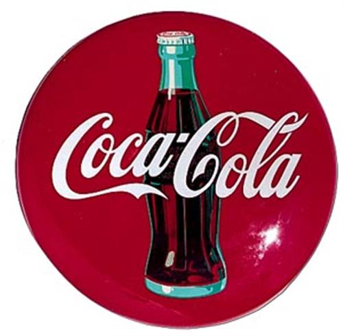 1954 Coca-cola tin button sign, mint