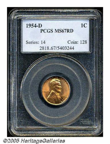 <B>1954-D<1C> MS67 Red PCGS.</B></I> Remarkably well preserved example with even luster and luscious red surfaces.<BR><I>From The William Bickel Collection, Part One.</B></I>