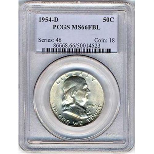 1954-D 50C HALF DOLLAR PCGS MS66FBL