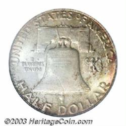 <table><tr><td><TABLE cellSpacing=0 cellPadding=0 width="100%" bgColor=#000000 border=0><TBODY> <TR><TD width="100%"><TABLE cellSpacing=1 cellPadding=3 width="100%" border=0><TBODY><TR><TD width="100%" bgColor=#79735c><FONT face=arial color=#ffffff size=3><B>Description</B> </FONT></TD></TR><TR><TD width="100%" bgColor=#ffffff><FONT face=arial size=2><B>1954-D 50C MS66 Full Bell Lines PCGS.</B></I> While generally available for a price in lower grades (even with Full Bell Lines), the 1954-D is an important condition rarity in MS66 condition. PCGS has certified only 32 examples, with just 2 finer (9/03). Rich, mint set toning overlays each side; the obverse displays irregular apple-green, crimson, gold, and russet colorations, the reverse is much lighter with similar colors present. A splendid coin and probably of mint set origin. </FONT></TD></TR></TBODY></TABLE></TD></TR></TBODY></TABLE><BR><A name=PricesRealized></A><TABLE cellSpacing=0 cellPadding=0 width="100%" bgColor=#000000 border=0><TBODY><TR><TD width="100%"><TABLE cellSpacing=1 cellPadding=3 width="100%" border=0><TBODY><TR><TD width="100%" bgColor=#79735c><A name=PR><FONT face=arial color=#ffffff size=3><B>Previous Prices from Heritage Auctions</B> </FONT></A></TD></TR><TR><TD bgColor=#f6f6ed><TABLE cellSpacing=0 cellPadding=0 width="100%" border=1><TBODY><TR><TD align=middle width="33%"><B>Date</B></TD><TD align=middle width="33%"><B>Service</B></TD><TD align=middle width="33%"><B>Price</B></TD></TR><TR bgColor=whitesmoke><TD width="33%"><B>09/20/2003</B></TD><TD width="33%">NGC</TD><TD width="33%">$948.75</TD></TR><TR bgColor=whitesmoke><TD width="33%"><B>07/29/2003</B></TD><TD width="33%">PCGS</TD><TD width="33%">$1,610.00</TD></TR><TR bgColor=whitesmoke><TD width="33%"><B>03/23/2003</B></TD><TD width="33%">PCGS</TD><TD width="33%">$3,565.00</TD></TR><TR bgColor=whitesmoke><TD width="33%"><B>03/01/2003</B></TD><TD width="33%">PCGS</TD><TD width="33%">$1,782.50</TD></TR><TR bgColor=whitesmoke><TD width="33%"><B>03/01/2003</B></TD><TD width="33%">PCGS</TD><TD width="33%">$2,415.00</TD></TR><TR bgColor=whitesmoke><TD width="33%"><B>01/11/2003</B></TD><TD width="33%">PCGS</TD><TD width="33%">$1,782.50</TD></TR><TR bgColor=whitesmoke><TD width="33%"><B>01/11/2003</B></TD><TD width="33%">PCGS</TD><TD width="33%">$2,990.00</TD></TR><TR bgColor=whitesmoke><TD width="33%"><B>11/23/2002</B></TD><TD width="33%">PCGS</TD><TD width="33%">$4,140.00</TD></TR><TR bgColor=whitesmoke><TD width="33%"><B>04/27/2002</B></TD><TD width="33%">PCGS</TD><TD width="33%">$2,587.50</TD></TR><TR bgColor=whitesmoke><TD width="33%"><B>10/06/2001</B></TD><TD width="33%">PCGS</TD><TD width="33%">$1,265.00</TD></TR><TR bgColor=whitesmoke><TD width="33%"><B>08/08/2001</B></TD><TD width="33%">NGC</TD><TD width="33%">$586.50</TD></TR><TR bgColor=whitesmoke><TD width="33%"><B>10/06/2000</B></TD><TD width="33%">PCGS</TD><TD width="33%">$4,370.00</TD></TR><TR bgColor=whitesmoke><TD width="33%"><B>01/01/2001</B></TD><TD width="33%">PCGS</TD><TD width="33%">$6,670.00</TD></TR></TBODY></TABLE></TD></TR><TR><TD bgColor=#ffffff><FONT face=arial size=1 ?>PLEASE NOTE: All prices realized reflect the final hammer price PLUS the buyer's premium in auctions that charge a buyer's premium. Each item has a notation at the top of the listing indicating whether that lot included a buyer's premium. Example: A item that sells with a final hammer price of $100 and a 20% buyer's premium will display with a price realized of $120. All information listed is intended to be as accurate as possible, but errors are possible. Please use this guide carefully and inform us of any inaccuracies. </FONT></TD></TR></TBODY></TABLE></TD></TR></TBODY></TABLE><BR><TABLE cellSpacing=0 cellPadding=0 width="100%" bgColor=#000000 border=0><TBODY><TR><TD width="100%"><TABLE cellSpacing=1 cellPadding=3 width="100%" border=0><TBODY><TR><TD width="100%" bgColor=#79735c colSpan=6><FONT face=arial color=#ffffff size=3><B>Price Guide*</B> </FONT></TD></TR><TR bgColor=#f6f6ed><TD align=middle><B>Grade</B> </TD><TD align=middle><B>Coin World<BR>(Trends)</B> </TD><TD align=middle><B>Numismedia<BR>Retail</B> </TD><TD align=middle><B>Numismedia<BR>Wholesale</B> </TD><TD align=middle><B>Coin<BR>Universe</B> </TD><TD align=middle><B>Heritage<BR>Value Index</B> </TD></TR><TR bgColor=#ffffff><TD align=middle>65</TD><TD align=right>---</TD><TD align=right>$195.00</TD><TD align=right>$156.00</TD><TD align=right>$175.00</TD><TD align=right>$103.75</TD></TR><TR style="FONT-WEIGHT: bold" bgColor=#cccfdd><TD align=middle>66</TD><TD align=right>---</TD><TD align=right>---</TD><TD align=right>$2,175.00</TD><TD align=right>$2,900.00</TD><TD align=right>$2,030.00</TD></TR><TR bgColor=#ffffff><TD align=middle>67</TD><TD align=right>---</TD><TD align=right>---</TD><TD align=right>$21,275.00</TD><TD align=right>---</TD><TD align=right>---</TD></TR><TR bgColor=#ffffff><TD colSpan=6><FONT size=1>*All information listed is intended to be as accurate as possible, but errors are possible. No item may be returned or refused based on this information which is provided as a service to our customers. You should contact each pricing source directly to determine the accuracy of this information. </FONT></TD></TR></TBODY></TABLE></TD></TR></TBODY></TABLE><BR><TABLE cellSpacing=0 cellPadding=0 width="100%" bgColor=#000000 border=0><TBODY><TR><TD width="100%"><TABLE cellSpacing=1 cellPadding=3 width="100%" border=0><TBODY><TR><TD width="100%" bgColor=#79735c><FONT face=arial color=#ffffff size=3><B>Population Guide</B> </FONT></TD></TR><TR bgColor=#ffffff><TD align=middle><!-- Begin Output of Population Grid--><TABLE cellSpacing=0 cellPadding=0 width="100%" border=0><TBODY><TR><TD vAlign=center><TABLE cellSpacing=0 width="100%" border=1 cellsadding="3"><TBODY><TR><TD vAlign=center><TABLE cellSpacing=0 cellPadding=3 width="100%" border=1><TBODY><TR><TD vAlign=center align=middle bgColor=#f0f1e8 colSpan=2 <CENTER><FONT face=Arial size=2><B>PCGS Po