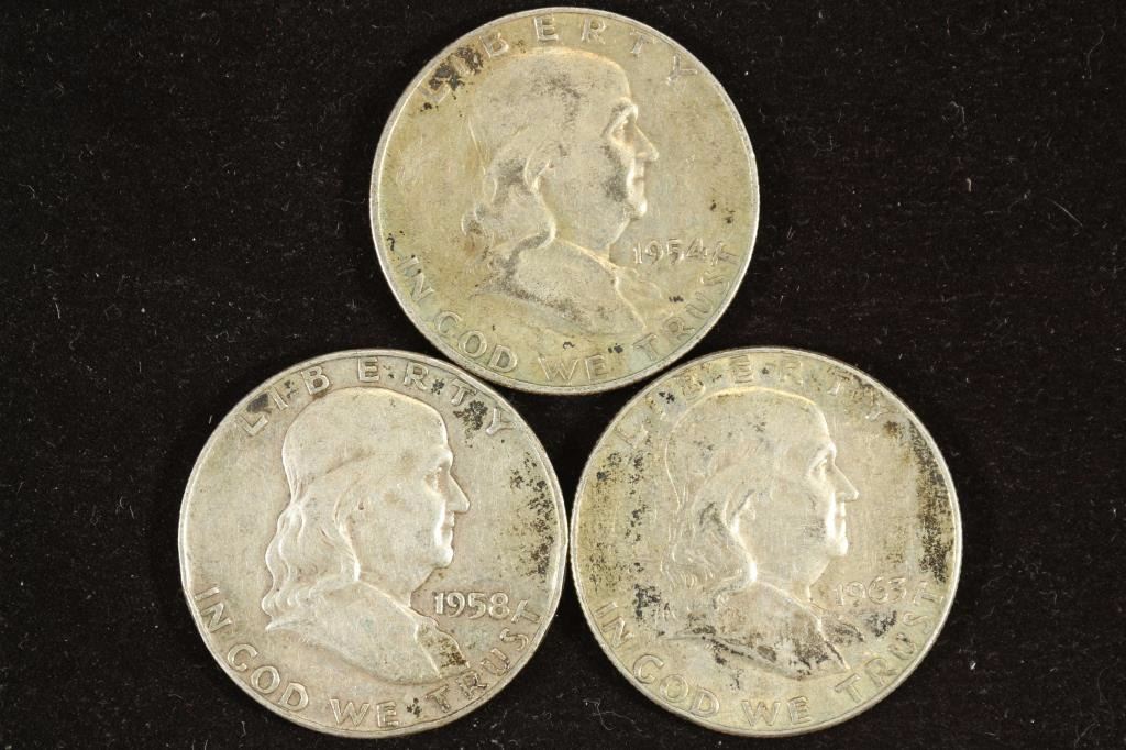 1954-D,58-D & 63-D FRANKLIN HALF DOLLARS