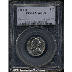 <B>1954-D<5C> MS65 Full Steps PCGS.</B></I> Subtle hints of speckled olive and gold color visit lustrous surfaces that are virtually devoid of contact marks. The design elements are nicely impressed throughout. Population: 15 in 65, 1 finer (9/04).<BR><I>From The Rafael Romero Collection.</B></I> <BR><BR><B>Important notice:</B> Heritage usually auctions material at the rate of 200-250 lots per hour. On some occasions eBay Live bid software or the Internet may not be able to keep up with the pace of the auction. We recommend placing a realistic absentee bid now as insurance to avoid disappointment. Occasionally the auctioneer may eliminate or reject an eBay Live bid, and the auctioneer may also reopen a lot after the close of the eBay live bidding (usually because we missed an audience bid), and may reject your bid even if it shows you as the winning bidder. By bidding via eBay Live, you agree that Heritage may award the lot to another bidder at its sole discretion under the circumstances described above or any other reasonable circumstances. Since eBay bids are not shown to us until we open the lot on the floor, we treat those bids just like floor bids. In most cases the floor responds before the eBay bid is presented to us, due to Internet lag time, so for consistency we have made it a policy that floor bids are always considered first over tie eBay live bids. Also please note that all Heritage lots purchased through eBay Live carry a 20% Buyer's Premium. Please make sure you read the Terms and Conditions before you bid.