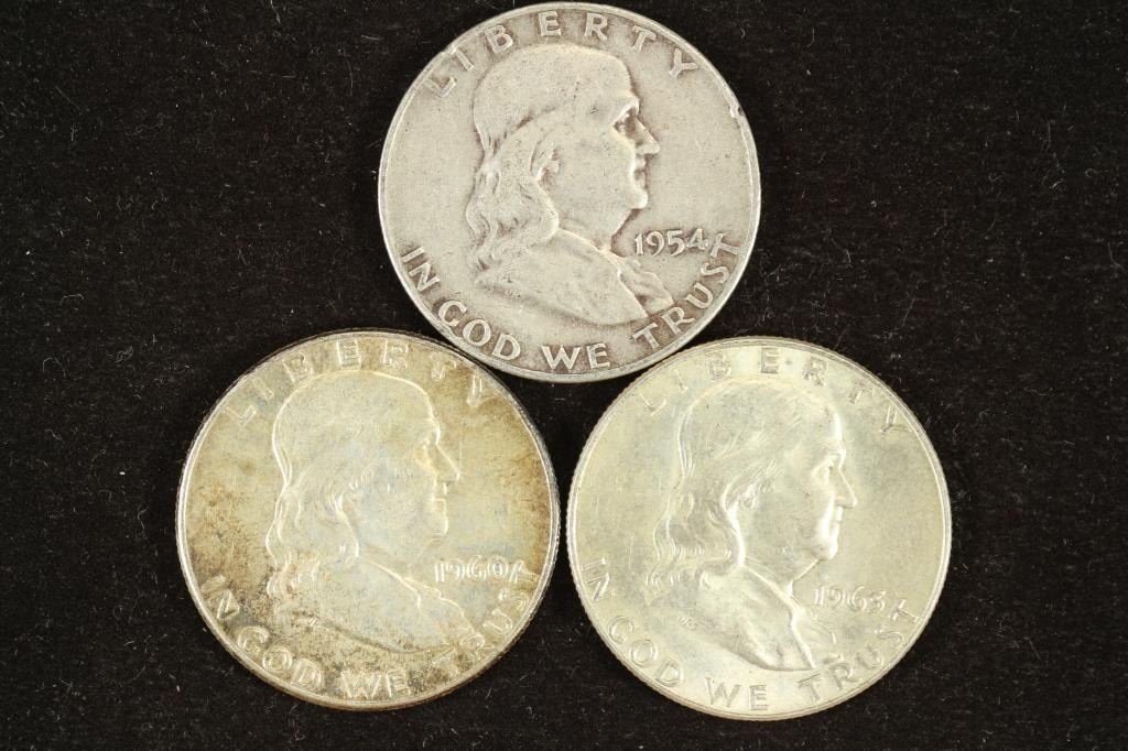 1954-D,60 & 63-D FRANKLIN HALF DOLLARS